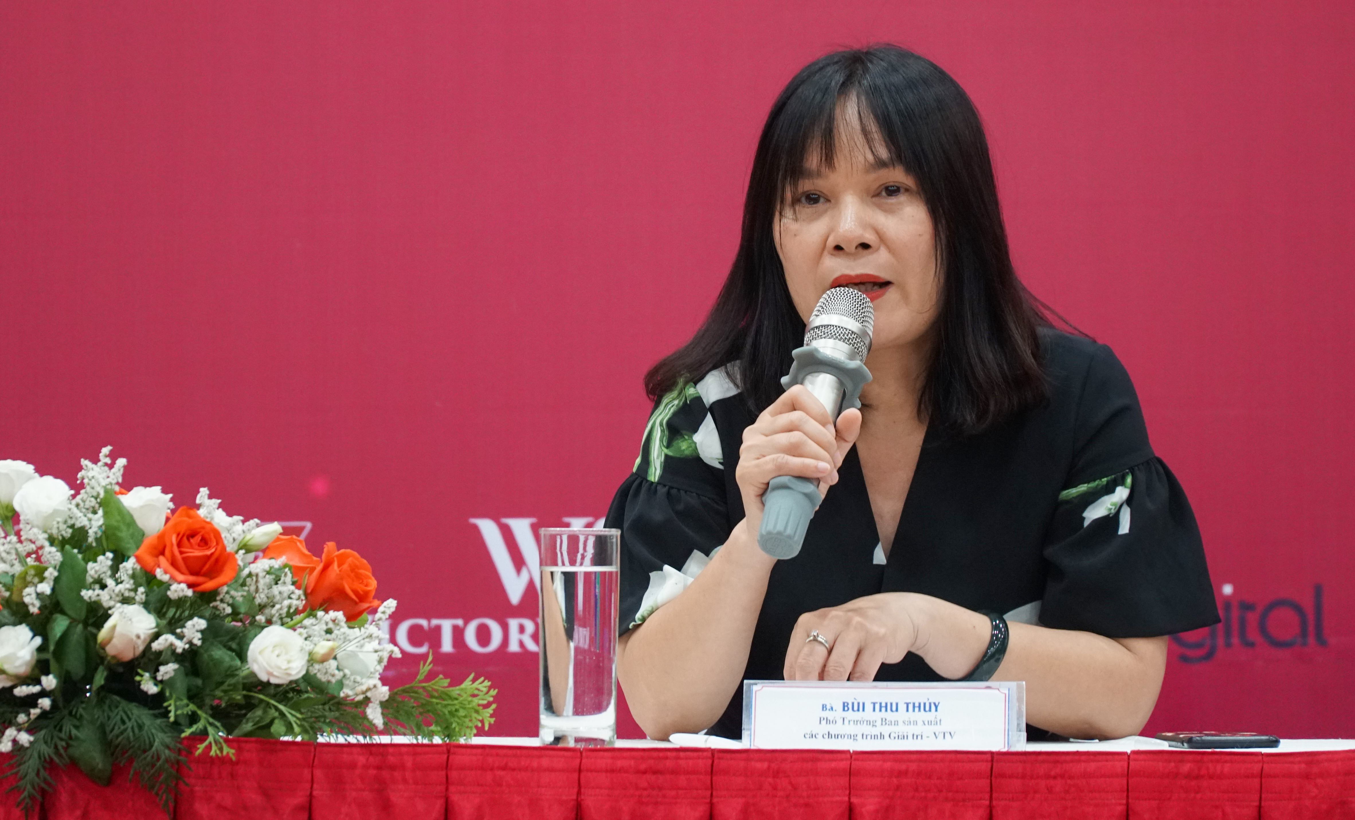 Bà Bùi Thu Thuỷ – Phó Trưởng Ban Sản xuất các chương trình giải trí VTV trong buổi họp báo.