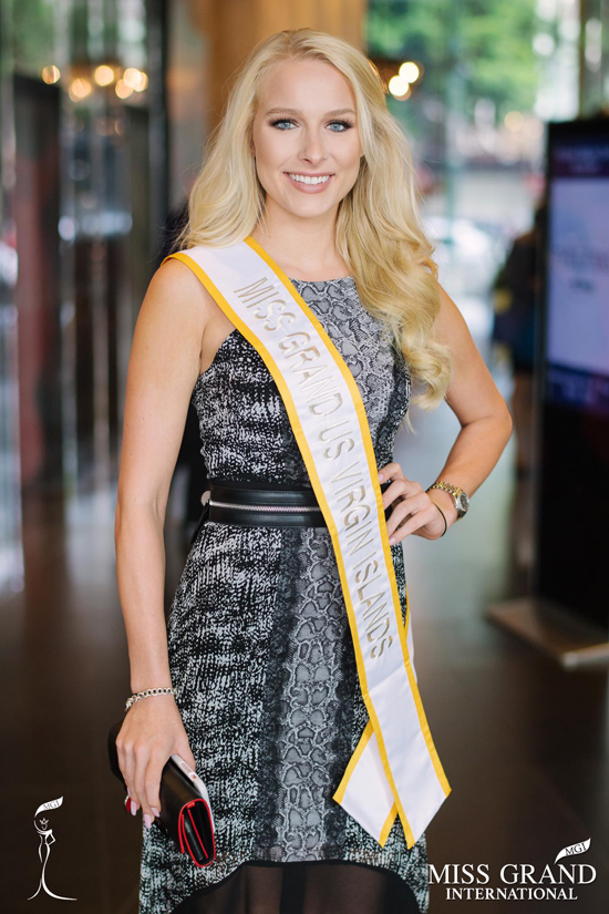 Trước đó, Brianna Marie Key - đại diện Miss Grand US Virgin Island ăn vận khá đơn giản và thân thiện với khán giả Việt Nam. Lần đầu tiên đến dải đất hình chữ S, cô chia sẻ mình khá lo lắng. Hành trình bay dài làm người đẹp gặp chút mệt mỏi, song sự đón tiếp nồng hậu của BTC khiến cô an lòng.
