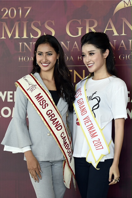 Á hậu Hoa hậu Việt Nam 2014 cùng Miss Grand Cambodia Khloem Sreykea.