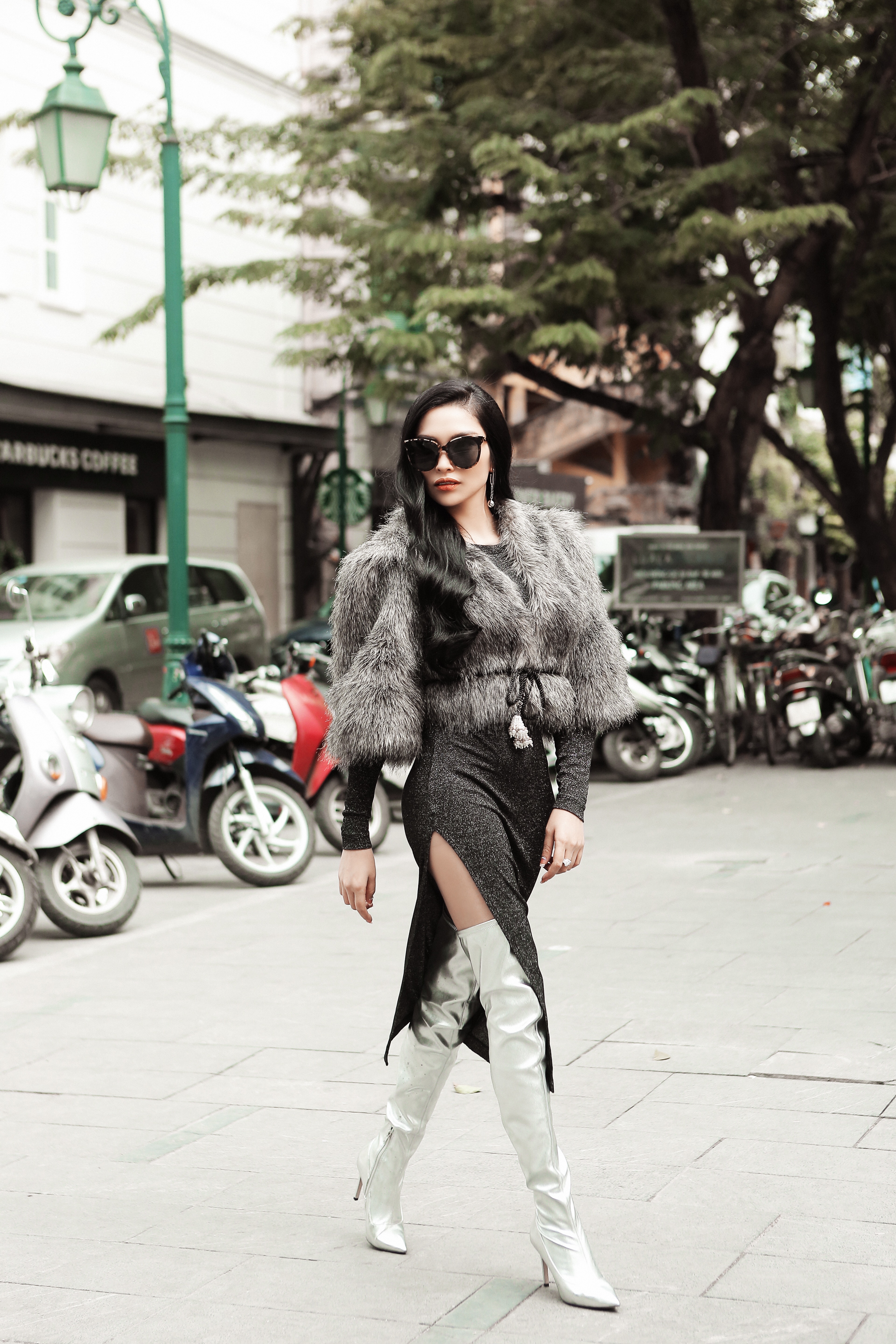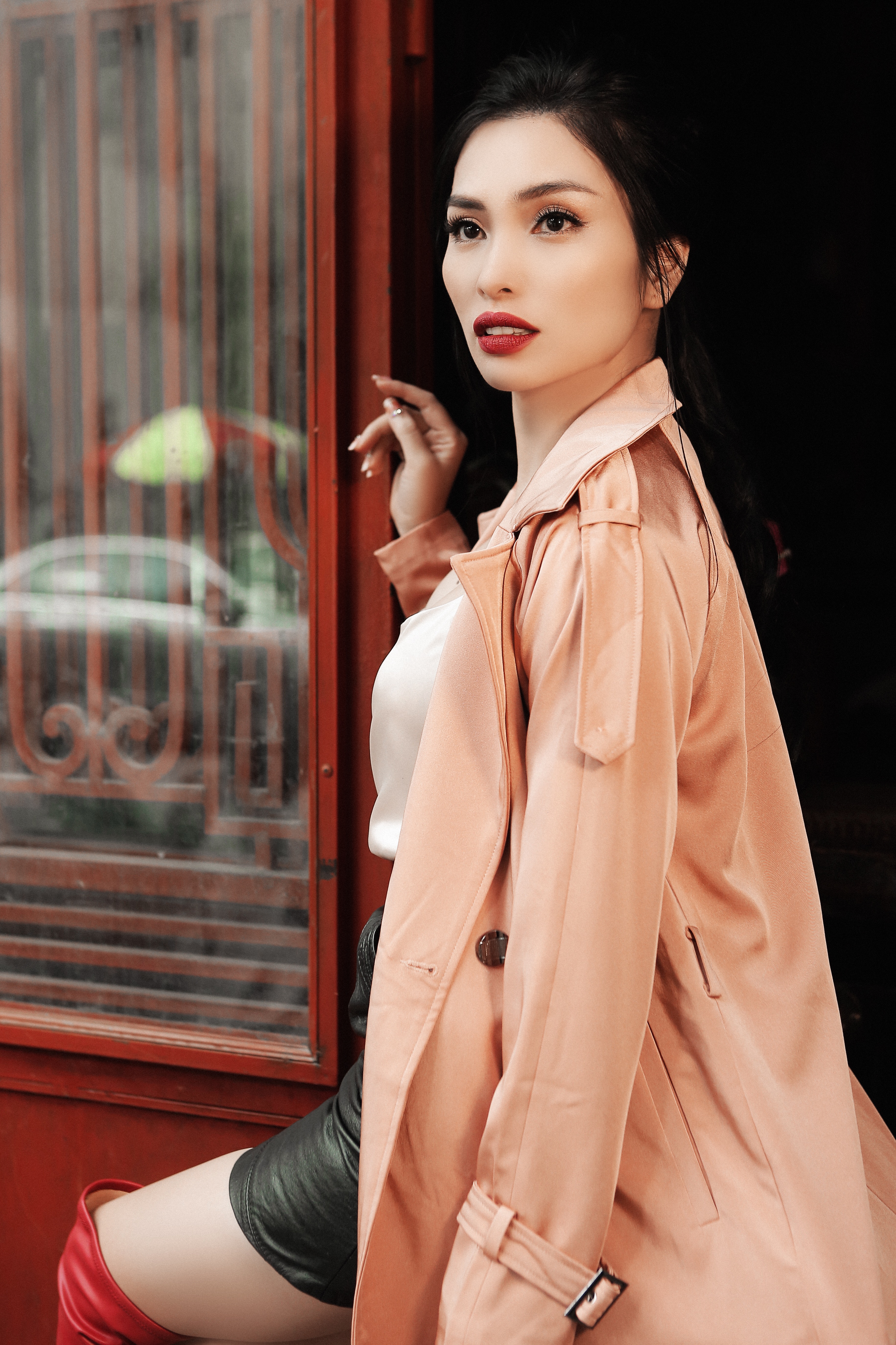 Nét đường cong quyến rũ của Huyền Sâm luôn là điểm nhấn cuốn hút người đối diện.