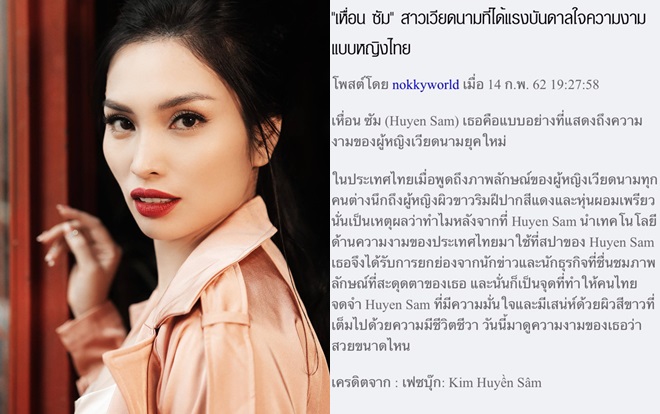 Bất ngờ hơn, mới đây MC Huyền Sâm đã xuất hiện trên trang chủ của tờ báo uy tín nhất Thái Lan khiến người hâm mộ vô cùng chú ý. Ngay từ tiêu đề, tờ báo này khẳng định rằng Huyền Sâm là một hình tượng đại diện cho sắc đẹp của người phụ nữ Việt Nam hiện đại.