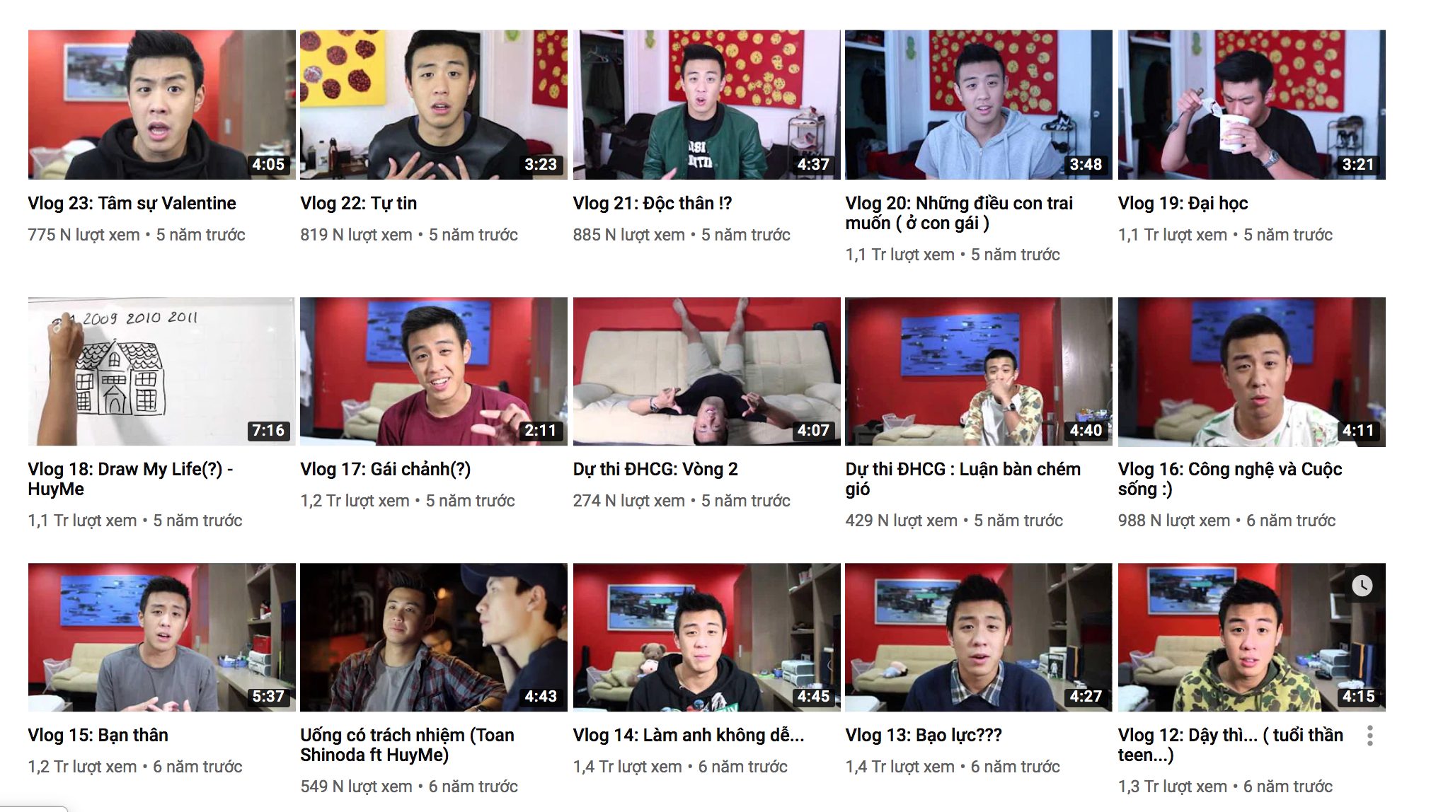 Những Vlog của Huyme thu hút hàng trăm ngàn lượt xem, có video chạm ngưỡng triệu view. Đây là con số “khủng” đối với một Vlogger thời điểm ấy.