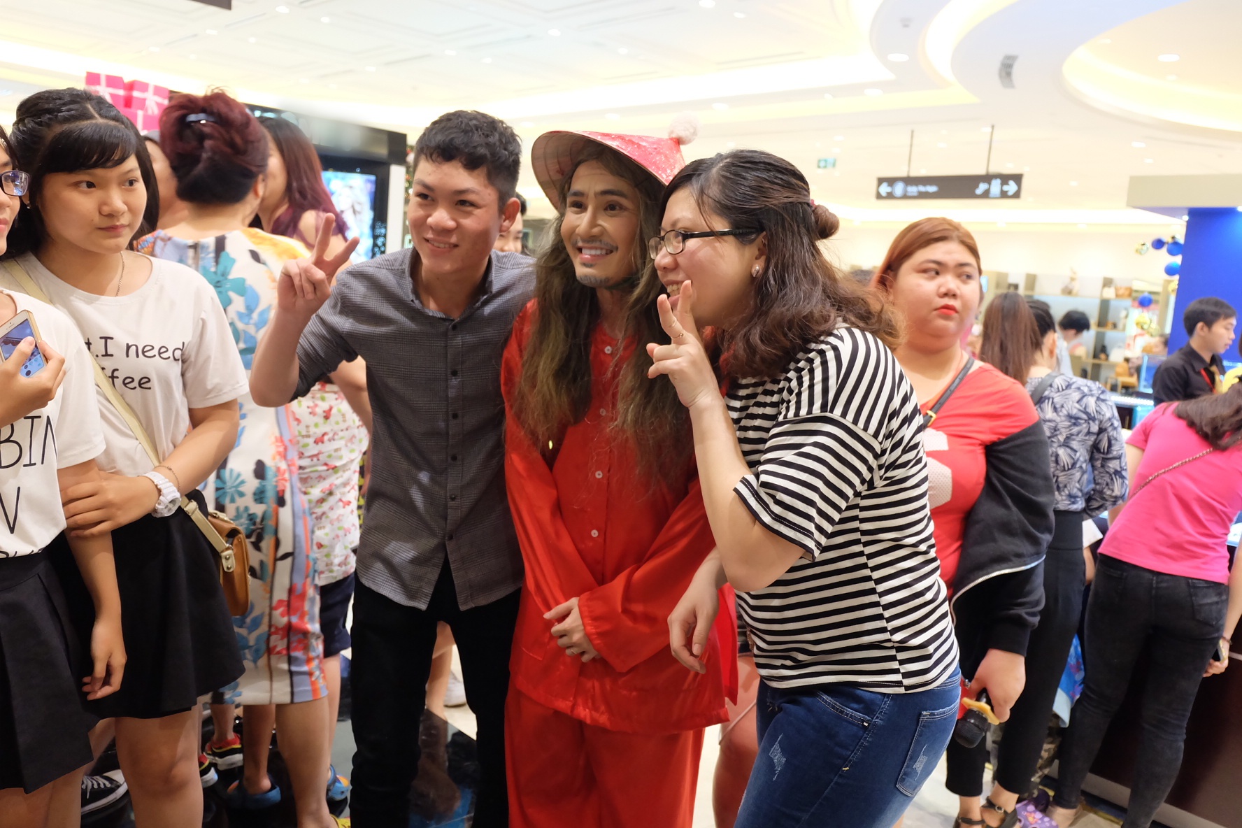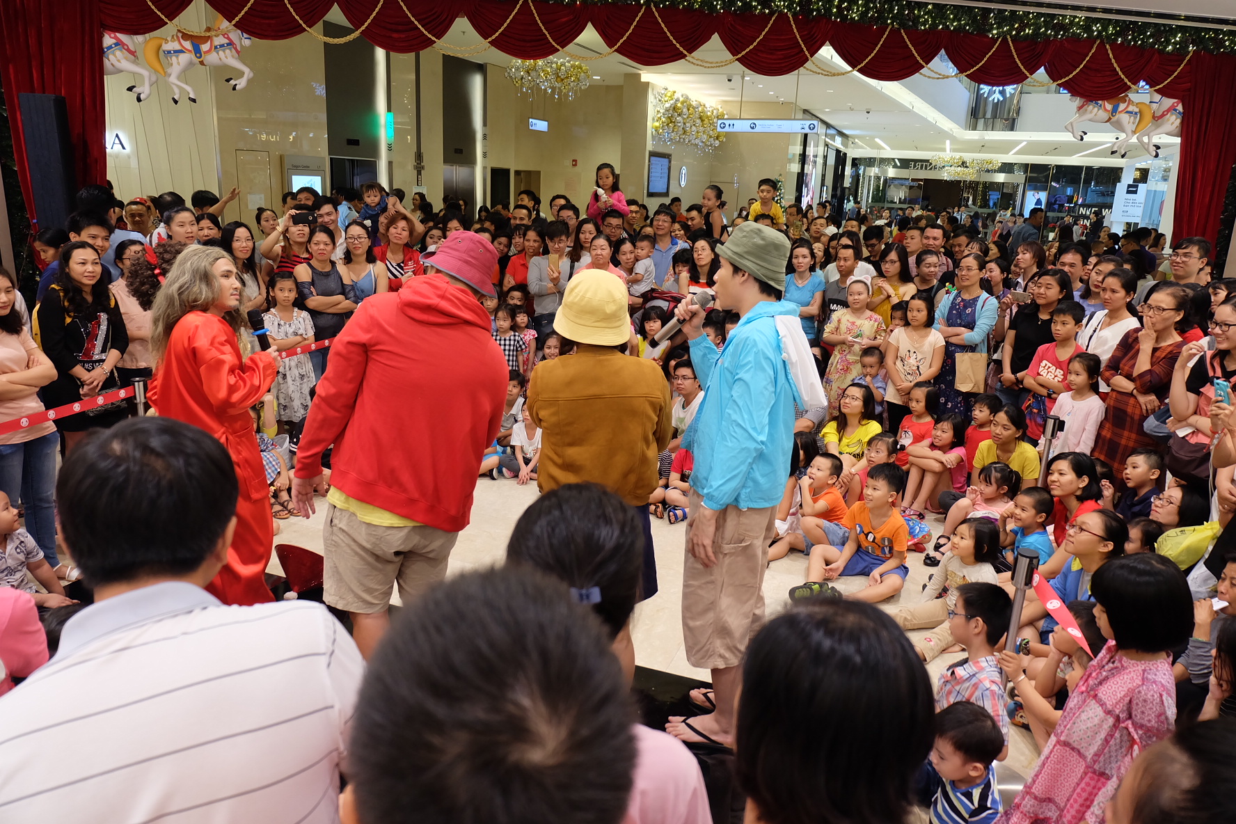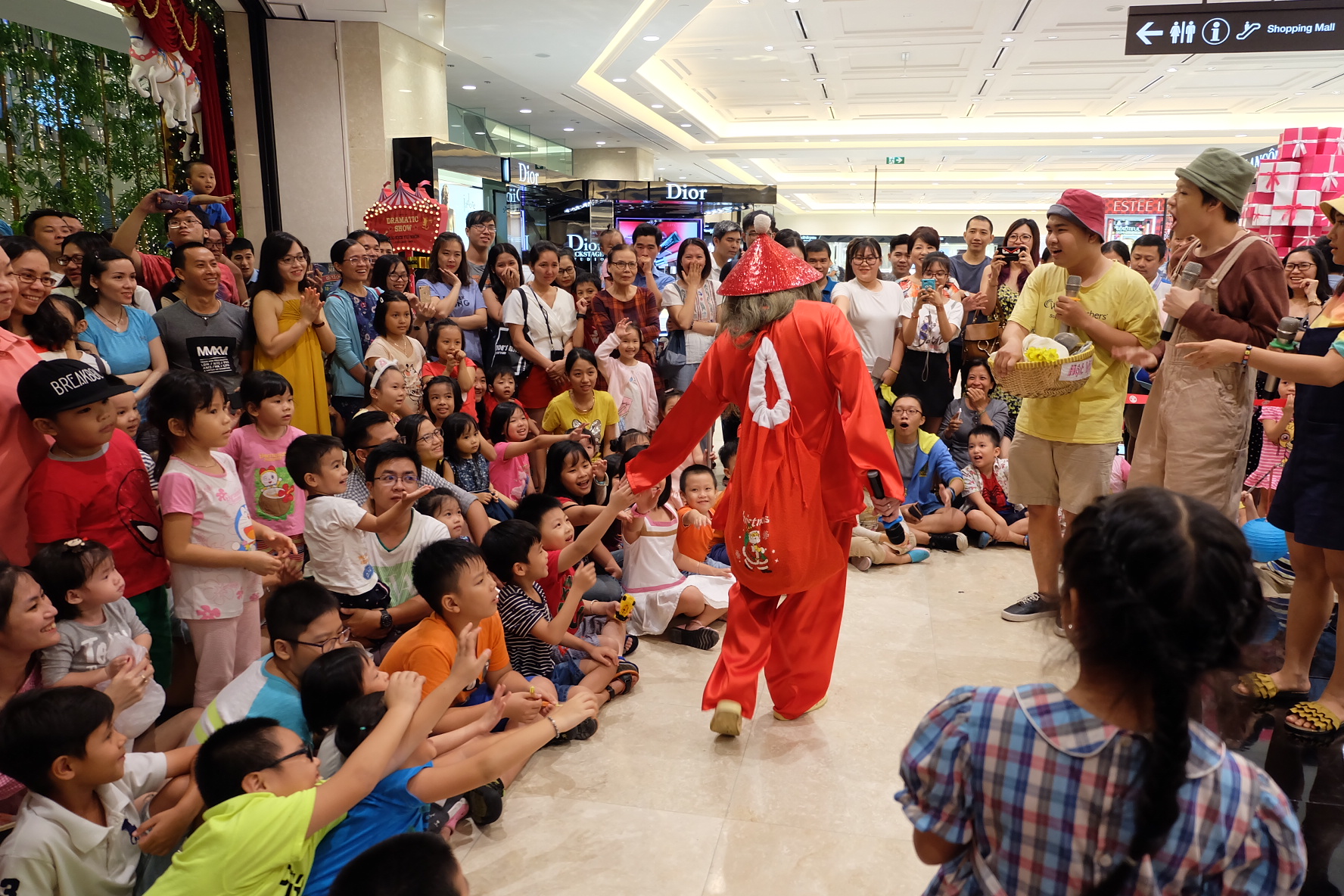 Cùng với các đồng nghiệp trong nhóm kịch Tía Lia, Huỳnh Lập biểu diễn tặng cho khán giả vở kịch Ước nguyện đêm Noel hài hước và không kém phần ý nghĩa. Sự xuất hiện của nhóm nghệ sĩ khiến không gian tại trung tâm thương mại trở nên vui nhộn, đông đảo hơn.