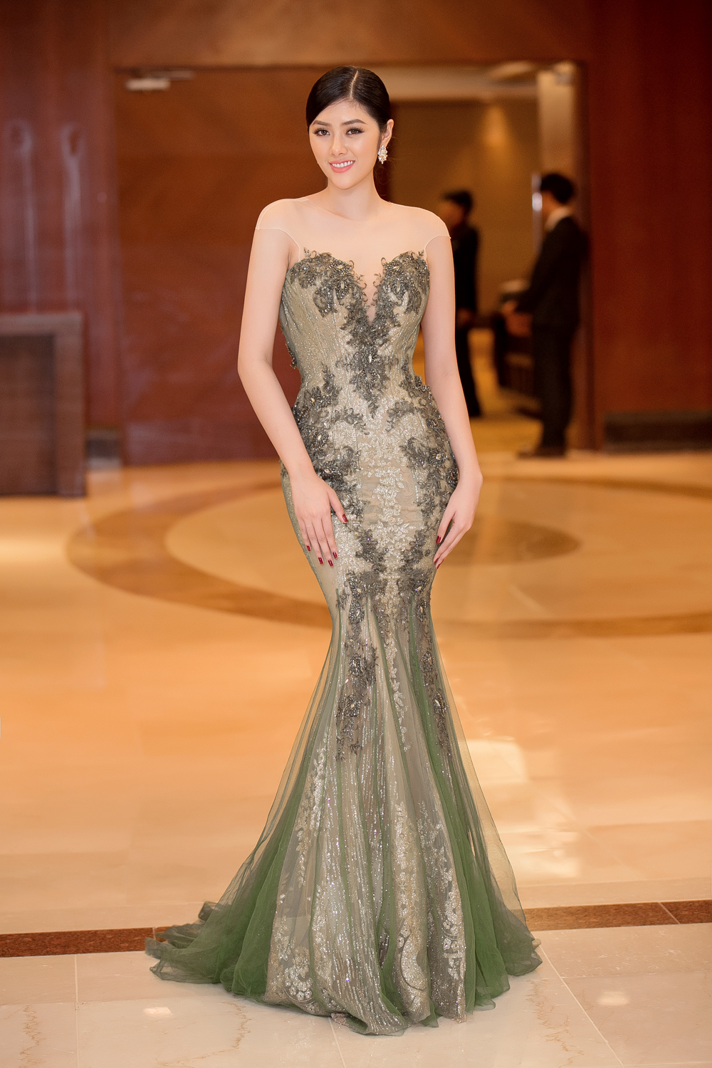 Đến tham dự Liên hoan phim, Huỳnh Tiên diện một bộ trang phục dạ hội ôm sát khoe triệt để vóc dáng và chiều cao nổi bật của mình.