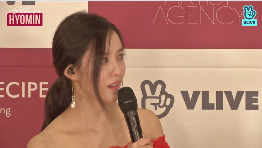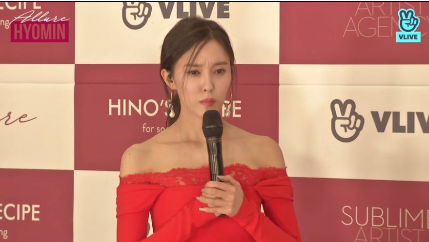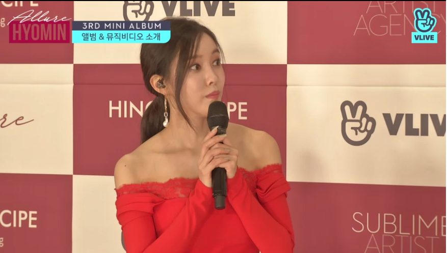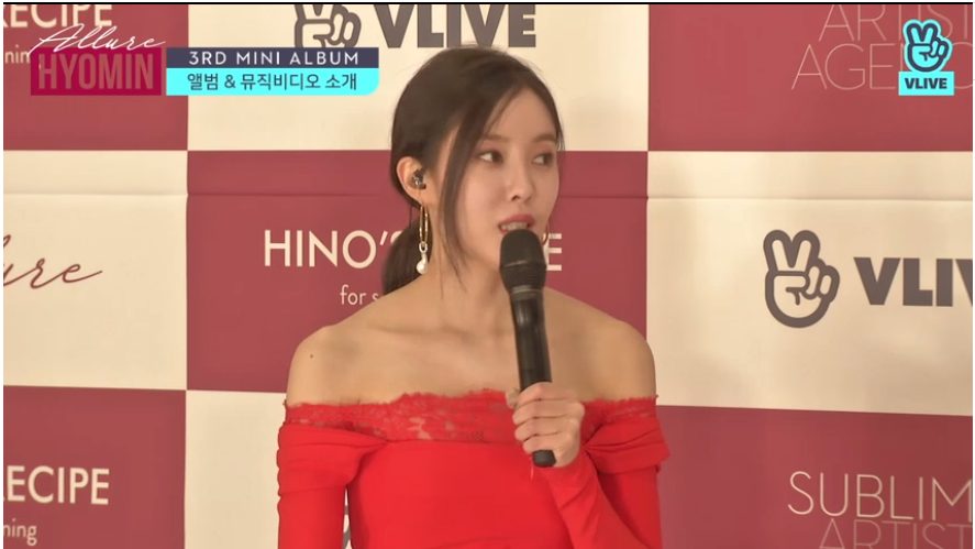 Bên cạnh đó, Hyomin cũng chia sẻ ca khúc Allure lần này mang ý nghĩa tự tin, không được từ bỏ. Và Hyomin hứa rằng sẽ chăm chỉ quảng bá hơn và cô hứa sẽ không từ bỏ để làm fan phải thất vọng.