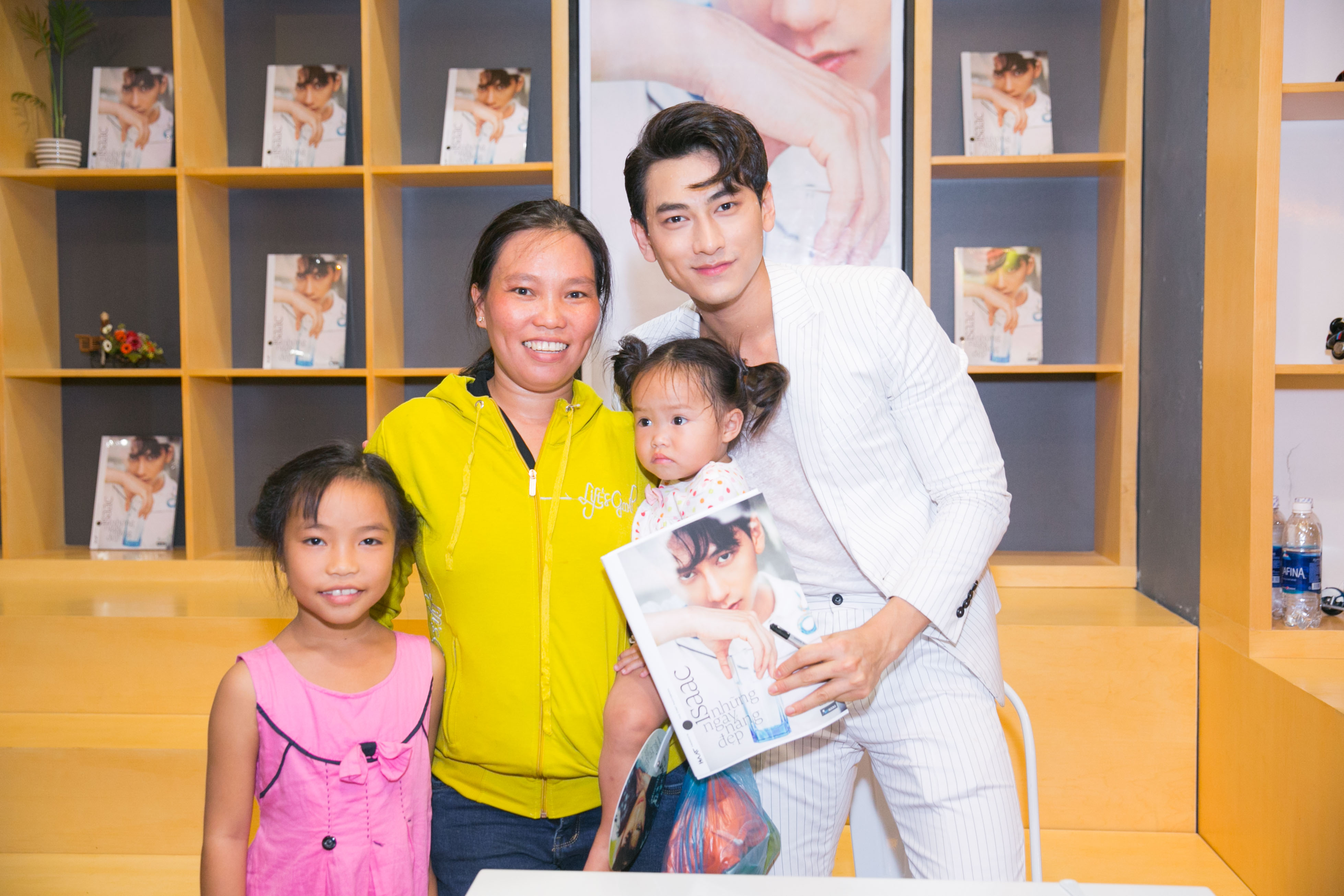 Đặc biệt trong chuyến ký tặng sách tại Cần Thơ, hội bạn thân cấp 3 của Isaac cùng vợ con cũng có mặt ủng hộ cho anh.