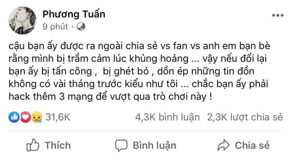 Thông tin trên khiến nhiều người đang thực sự “hỗn loạn” giữa nhiều luồng thông tin khác nhau. Mới đây, Jack cũng đã lên tiếng trên trang cá nhân của mình về câu chuyện trên. Giọng ca Sóng gió chia sẻ “Cậu bạn ấy được ra ngoài chia sẻ với fan với anh em bạn bè rằng mình bị trầm cảm lúc khủng hoảng… Vậy nếu đổi lại bạn ấy bị tấn công, bị ghét bỏ, dồn ép những tin đồn không có vài tháng trước kiểu như tôi… Chắc bạn ấy phải hack thêm 3 mạng để vượt qua trò chơi này”.