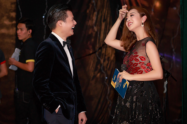 Jennifer Phạm tranh thủ chụp hình cho Quang Dũng phía trong hậu trường sự kiện.