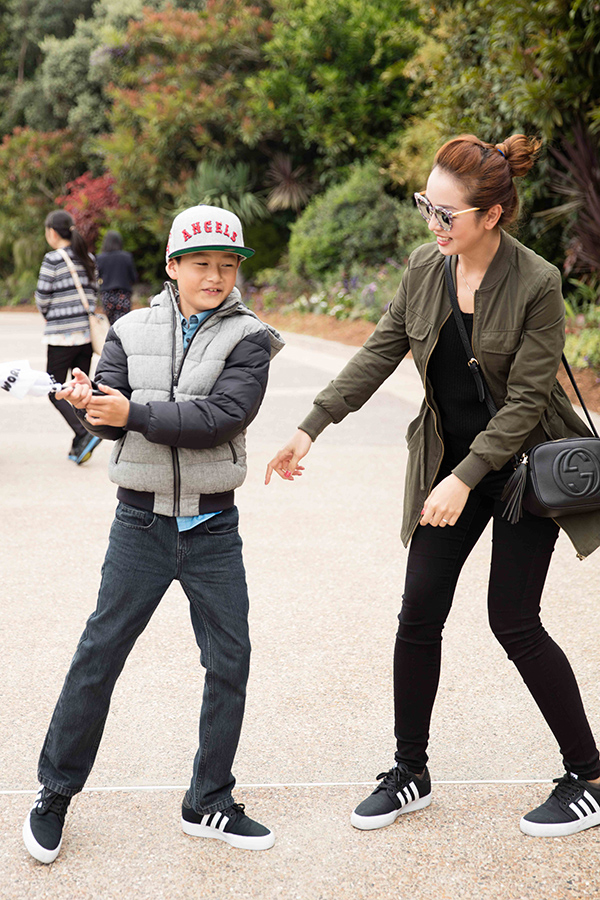 Jennifer Phạm giản dị đưa con trai đi chơi công viêcn nước.