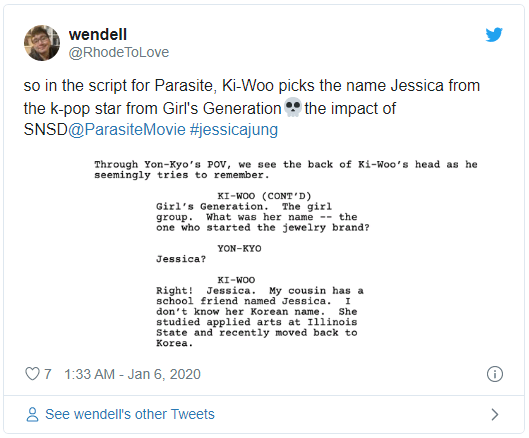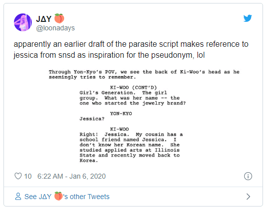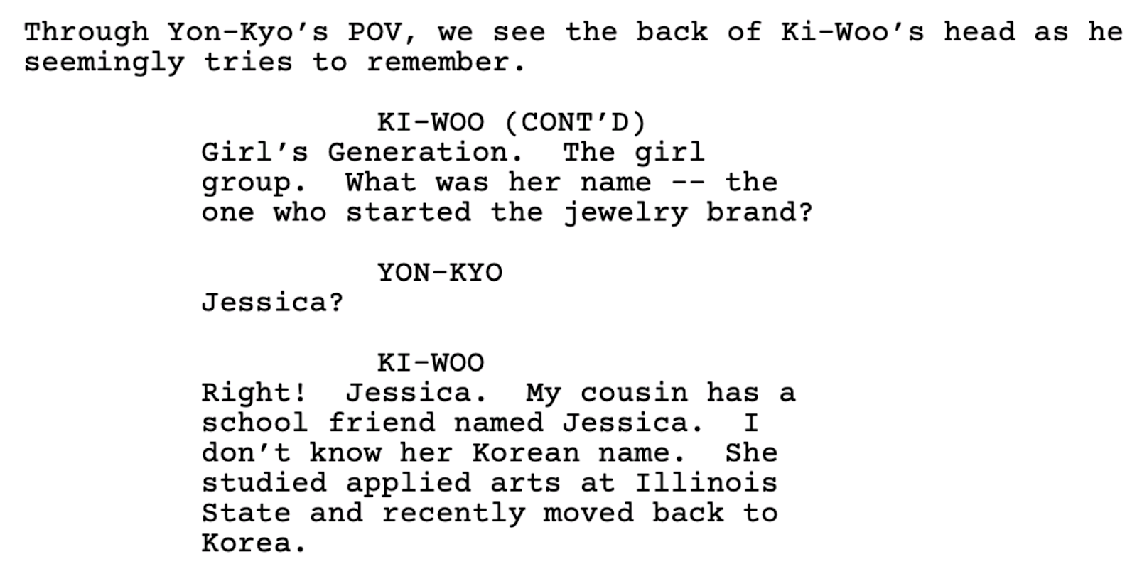 Ki-Woo nhớ đến Jessica vì cô sở hữu thương hiệu xa xỉ Blanc & Eclare được ra mắt vào năm 2014.