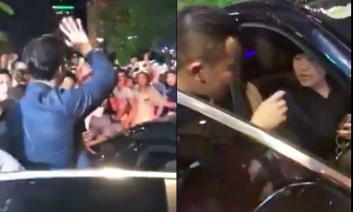 Đáng chú ý, một tình huống khá thú vị cũng xảy ra khi So Ji Sub rời tiệc. Cụ thể, do bị đám đông vây kín, nam diễn viên Giày thuỷ tinh đã có sự nhầm lẫn lúc lên xe ra về. Thay vì đi xe riêng, anh lại lên nhầm xế hộp của… ông bầu Vũ Khắc Tiệp.