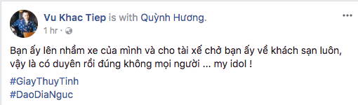 Sau giây phút bối rối, Vũ Khắc Tiệp đã ra tận nơi dặn dò tài xế chở So Ji Sub về đúng khách sạn của anh. Ông bầu thoải mái chia sẻ về “sự cố” trên trang cá nhân và tiết lộ anh làm vậy vì So Ji Sub chính là thần tượng của mình.