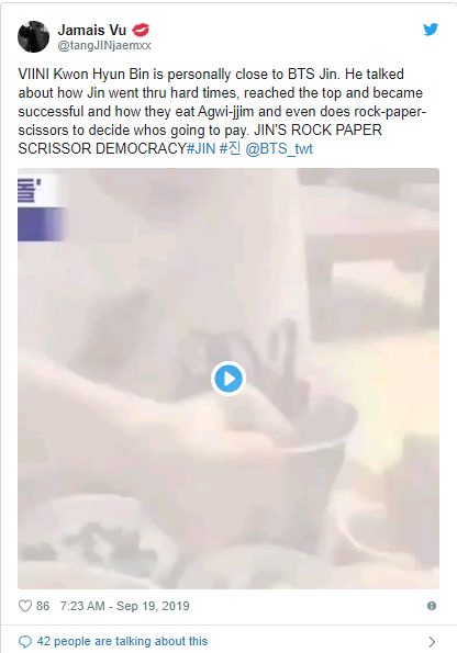 'Cá nhân em khá thân với Jin của BTS. Hyung đã trải qua những quãng thời gian khó khăn, vươn đến đỉnh vinh quang, và trở nên giàu có… nhưng bọn em vẫn chia tiền.' - VIINI