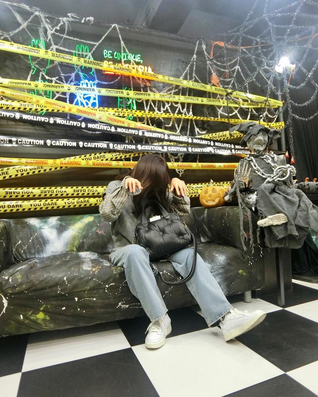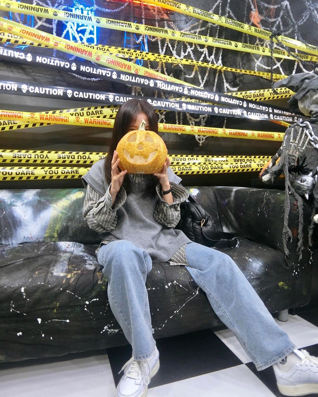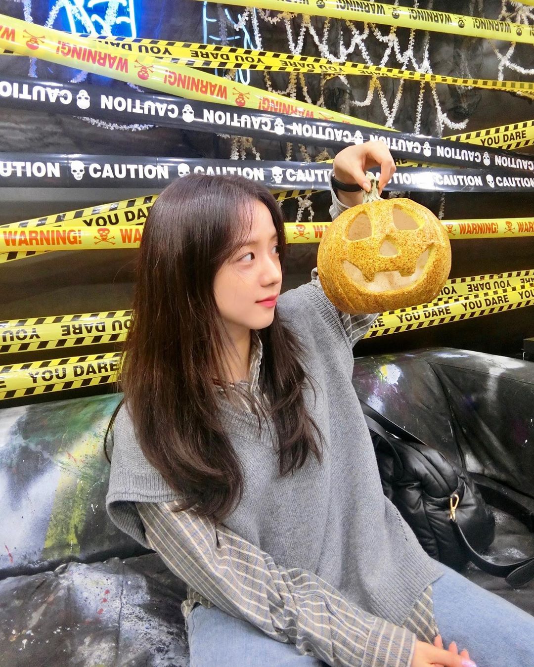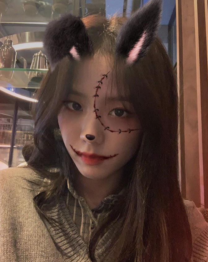 Ở bộ ảnh thứ hai, Jisoo đổi sang phong cách hơi đen tối với filter Halloween.