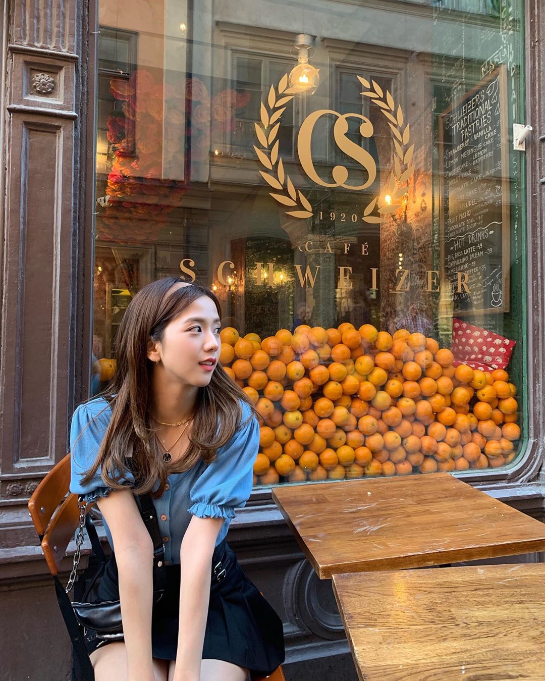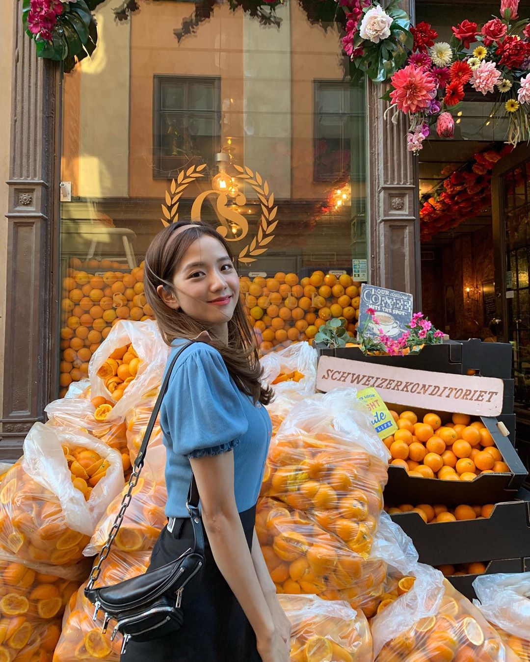 Trong series ảnh post mới đây của mình trên Instagram, Jisoo đã chụp ảnh đường phố Stockholm và biến cảnh vật thành phông nền cho riêng cô.