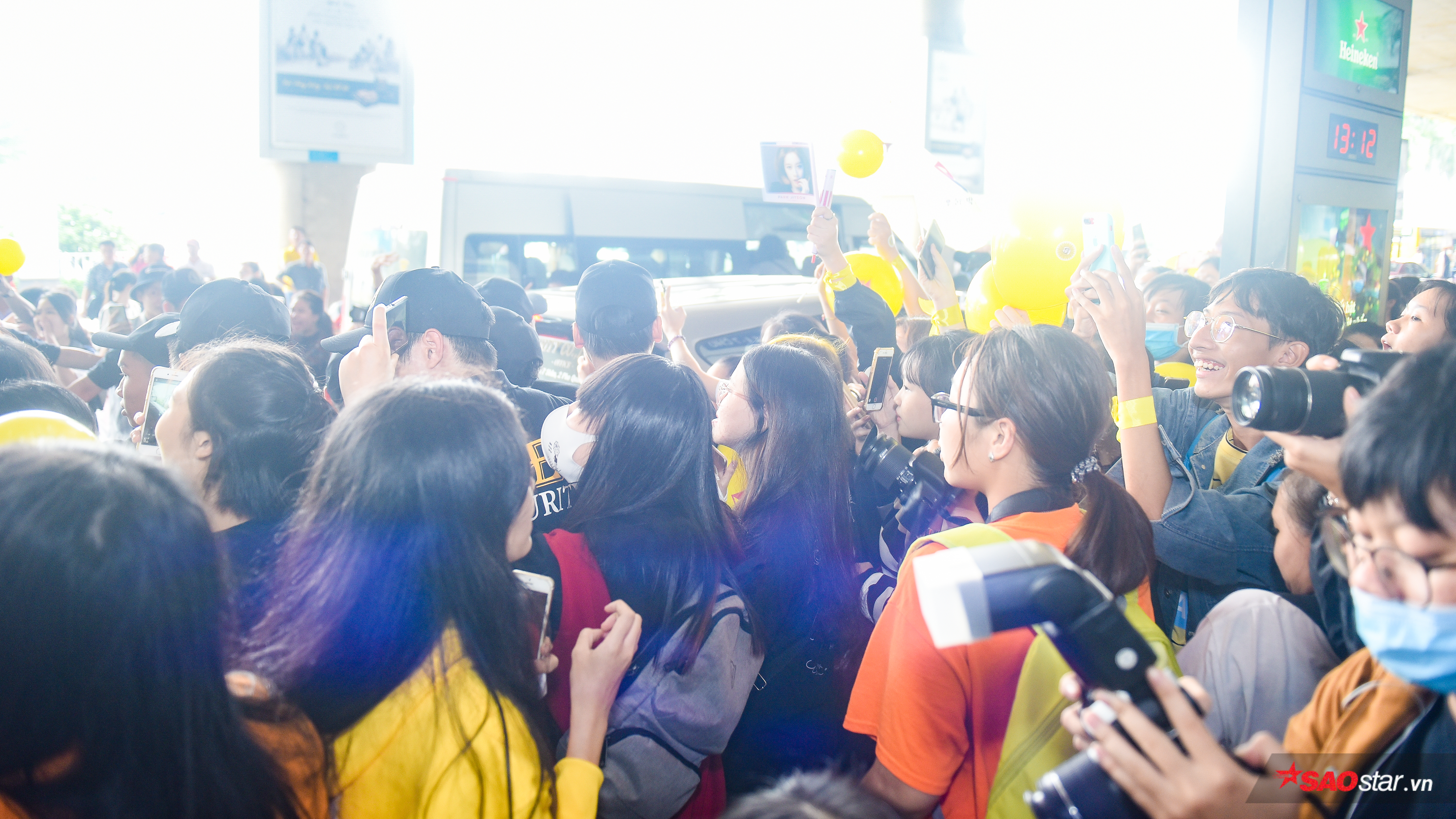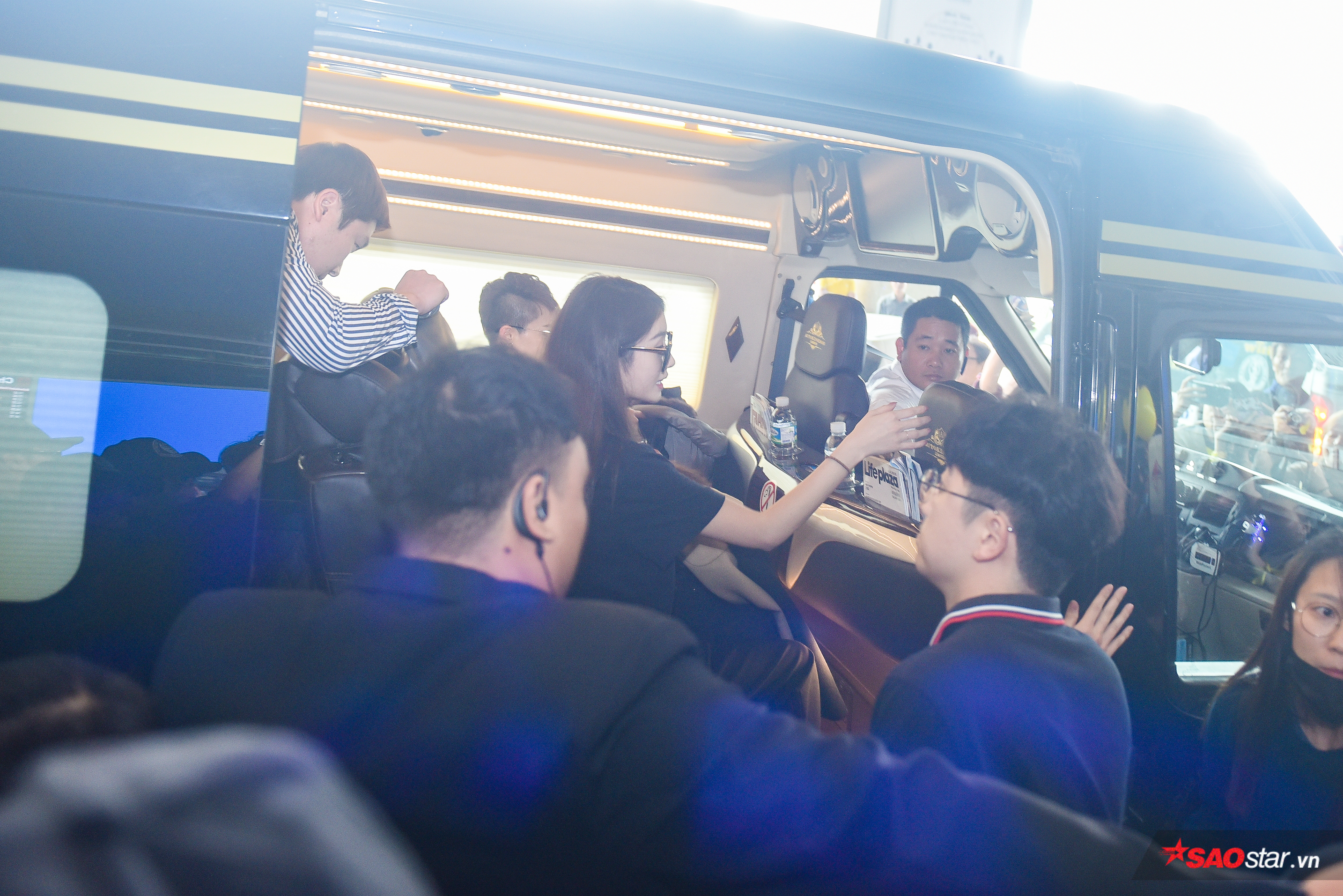 Các nhân viên an ninh phải khá vất vả mới hộ tống được nữ ca sĩ ra xe.