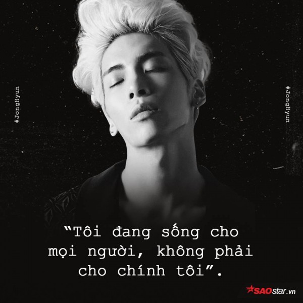 Jonghyun vẫn ở đó, trong mắt mọi người, không có gì bất thường. Anh vẫn cần mẫn đi quay show, đi thu album solo sắp ra mắt, đi siêu thị, hoặc xuất hiện tại các sự kiện đông đúc. Không có dấu hiệu gì cho thấy: Anh đang sắp tự sát. Nhưng riêng anh thì biết, anh đã chuẩn bị cho quyết định khó khăn này rất lâu rồi. Chỉ là người xung quanh không quan tâm đủ để nhận ra tình trạng bất ổn của anh. Ai nấy đều cho rằng: Áp lực và stress là điều phổ biến, như một căn bệnh mà bất kỳ ngôi sao nào cũng phải chấp nhận đeo mang và vượt qua. Không có gì phải quá lo lắng! Vì quan niệm chủ quan này mà Jonghyun đã bị bỏ mặc bởi những người gần bên nhất. Khi anh cất tiếng, không còn ai lắng nghe!