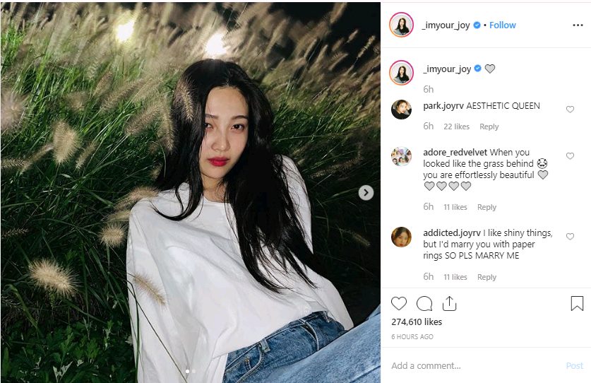 Trong loạt bài đăng mới đây trên tài khoảng Instagram vào ngày 13.9, Joy (Red Velvet) đã một lần nữa chứng minh rằng cô là nữ hoàng visual. Những tấm ảnh này, được chụp ở một khu vực nào đó trông giống như thảm cỏ của bãi đậu xe, trông thật trang nhã.