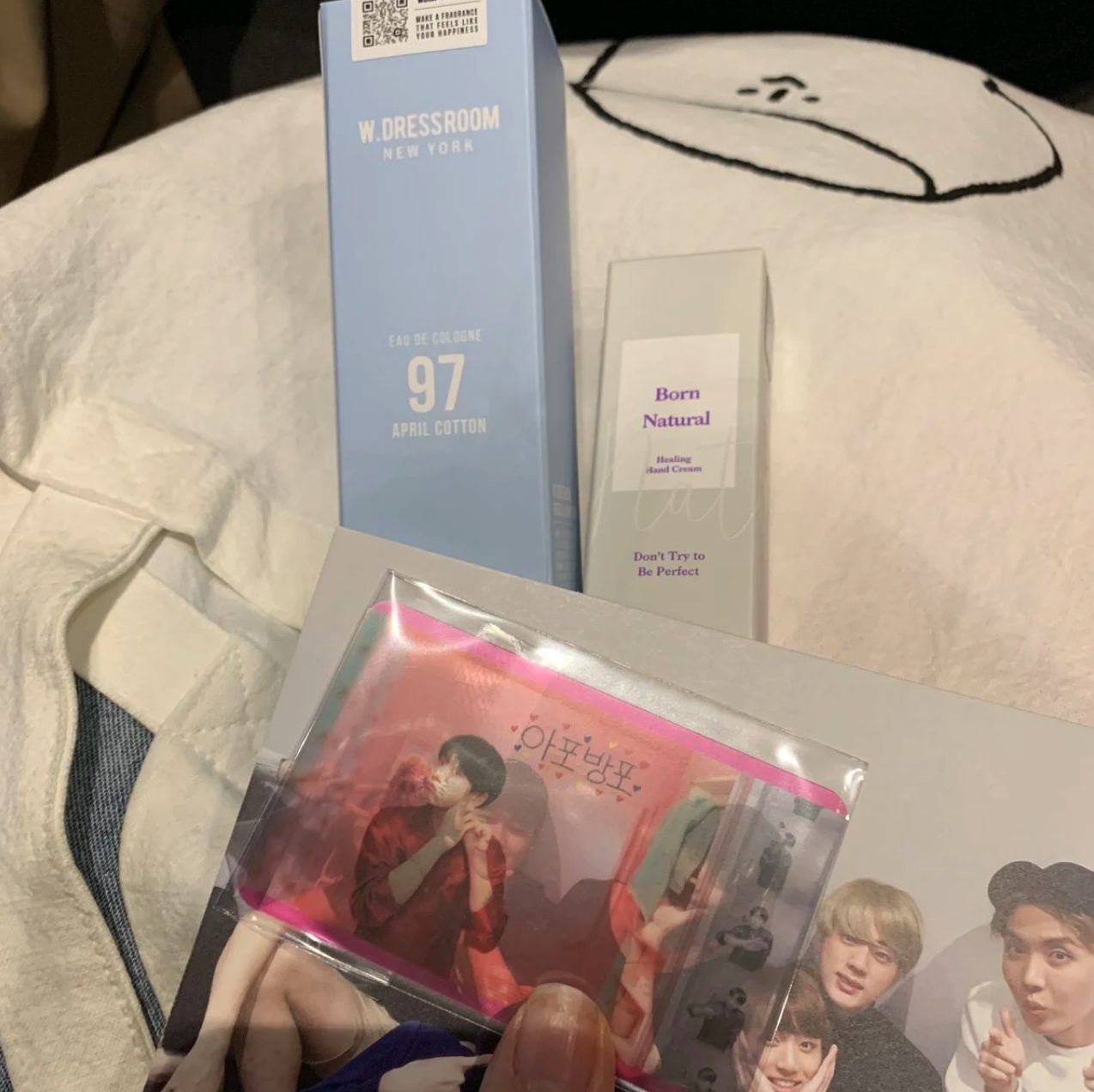 Jungkook gửi tặng các fan kem dưỡng da tay, chai xịt thơm và đính kèm hình ảnh của cả 7 thành viên của BTS cho các ARMY. Em út nhà BTS còn chu đáo để lại dòng chữ: “ARMY muôn năm, BTS muôn năm”.