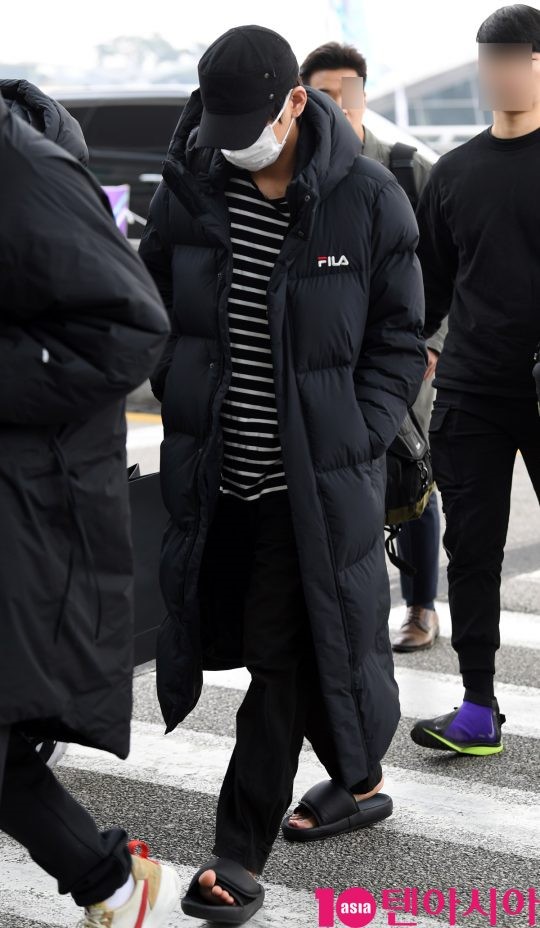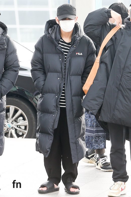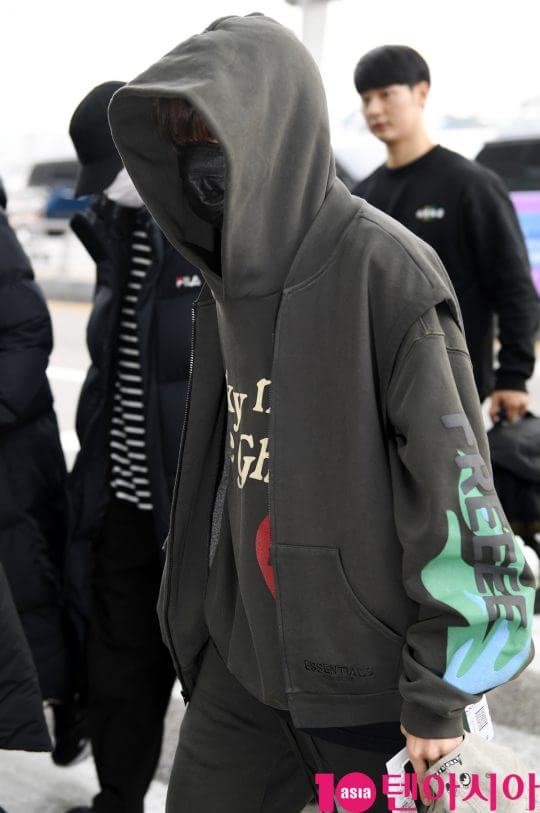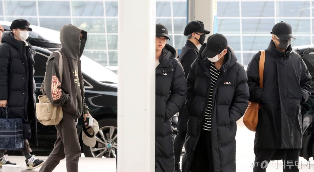 Ở các bức ảnh đăng tải, các thành viên mặc trang phục đen tối màu, đeo khẩu trang. Trong đó, cậu em út Jungkook nổi bật hơn bao nhiều giờ hết khi trước đó đã khiến báo chí tồn nhiều giấy mực. Nam ngôi sao cúi đầu bước đi, tránh máy quay từ phía phóng viên.