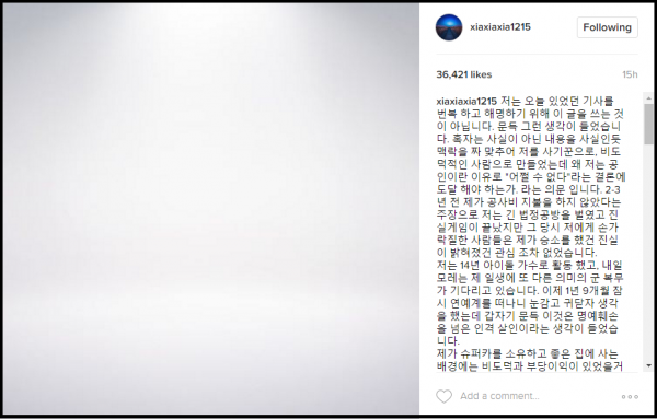 “Tôi đã ở showbiz hơn 14 năm và sắp tới đây sẽ sang một trang mới đó là thực hiện nghĩa vụ quân sự. Rời khỏi nơi tôi gắn bó 1 năm 9 tháng nên tôi nghĩ có lẽ mình nên nhắm mắt lại và quên câu chuyên này đi. Tuy nhiên, sau đó tôi lại cảm thấy dòng sự kiện này đi quá xa và ngày càng tiêu cực. Nhiều người cho rằng tôi sở hữu một căn nhà hạng sang, một siêu xe là nhờ từ những hành vi bất hợp pháp. Thế nhưng, tôi khẳng định không bao giờ kiếm tiền bằng cách làm hại người khác” - Junsu chia sẻ.