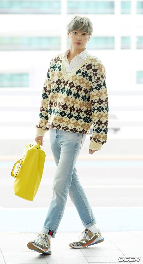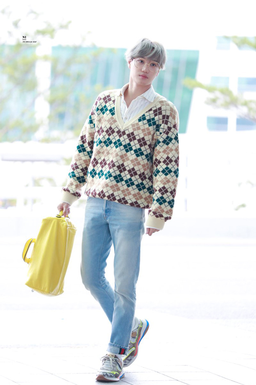 KAI có khả năng mặc nhiều phong cách khác nhau và trông thoải mái với tất cả chúng. Không có gì anh mặc có vẻ gượng ép hoặc giống như anh phải gồng lên, ngay cả khi anh thay đổi nhiều phong cách khác nhau thường xuyên. Bộ trang phục mang phong cách Anh-oxford-vibes này có đầy đủ các chi tiết nhỏ làm cho nó trở nên đáng yêu và ấm áp: balo, kính, hoa văn, giày thể thao.