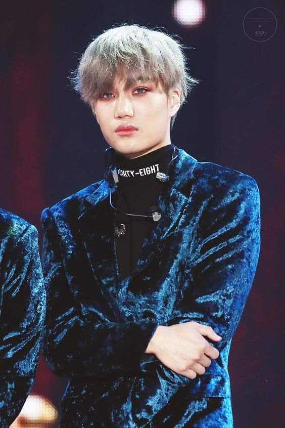 Một trong những đặc điểm tuyệt vời khác của KAI, là cách trang điểm của anh luôn làm nổi bật phong cách của anh ấy. Trong trường hợp này, sự kết hợp hoàn hảo của phấn mắt màu đỏ tía và nhung xanh đậm màu xanh lam kết hợp với nhau để lấy đi hơi thở và tâm trí của chúng ta.