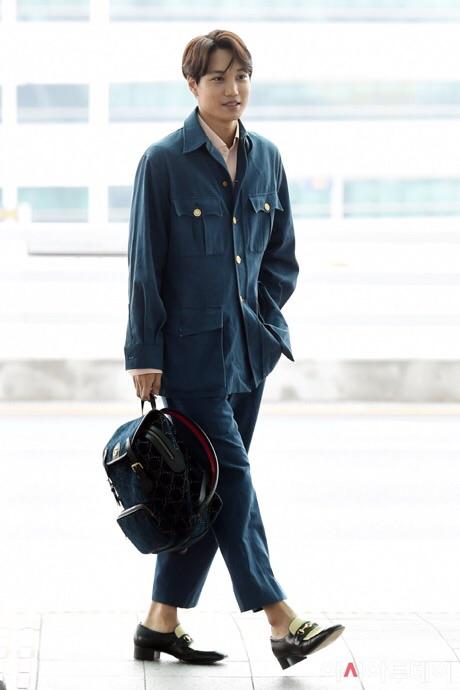 Nếu có một điều mà KAI biết cách làm tốt hơn bất kỳ ai khác, thì đó là việc gia nhập và biến đổi. Bộ đồ một màu đơn giản trở thành một set đồ đỉnh ở sân bay nhờ ba lô nhung và đôi giày lười Gucci.