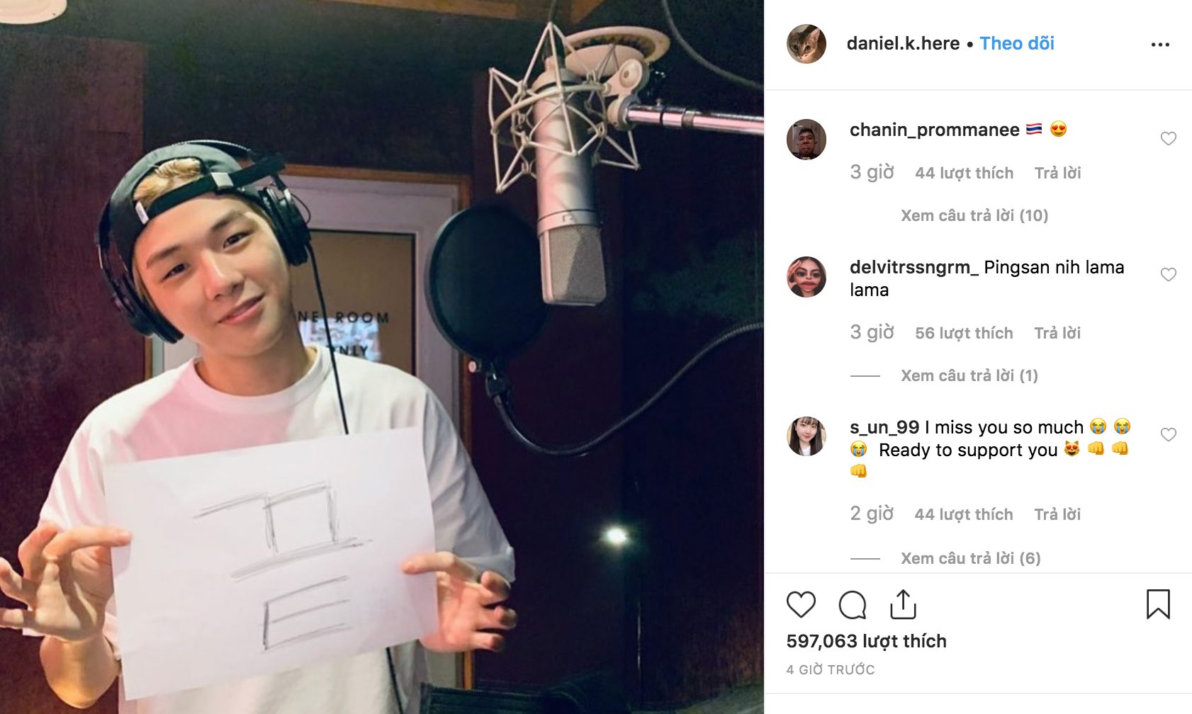 Mới đây, Kang Daniel đã chia sẻ một bức ảnh của anh trong một phòng thu âm và cầm một tờ giấy có dòng chữ “kết thúc”. Điều này như ngầm thông báo với người hâm mộ rằng anh đã hoàn tất việc thu âm ca khúc mới.
