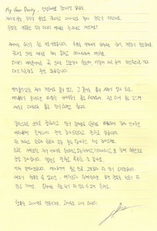 Thông qua fan cafe chính thức vào ngày 29/01, Kang Daniel đã đăng tải một lá thư viết tay gửi đến người hâm mộ của mình để bày tỏ mong muốn tiếp tục các hoạt động trong làng giải trí. Dưới đây là bài viết đầy đủ của nam ngôi sao sinh năm 1996: