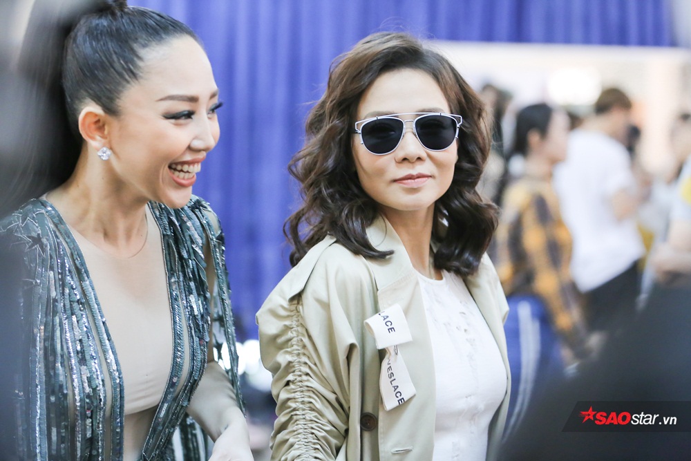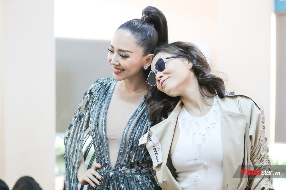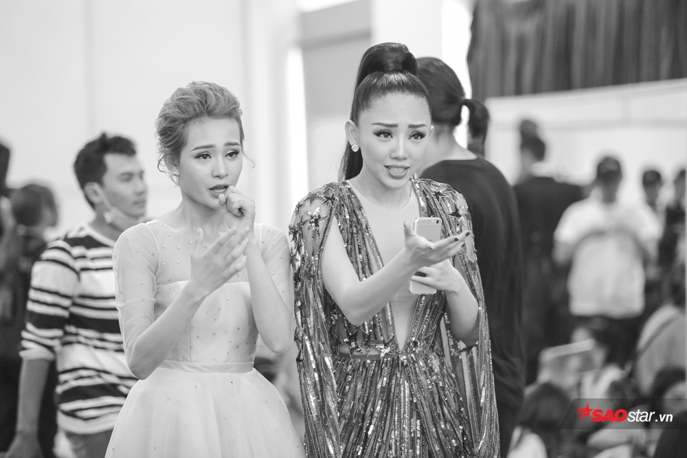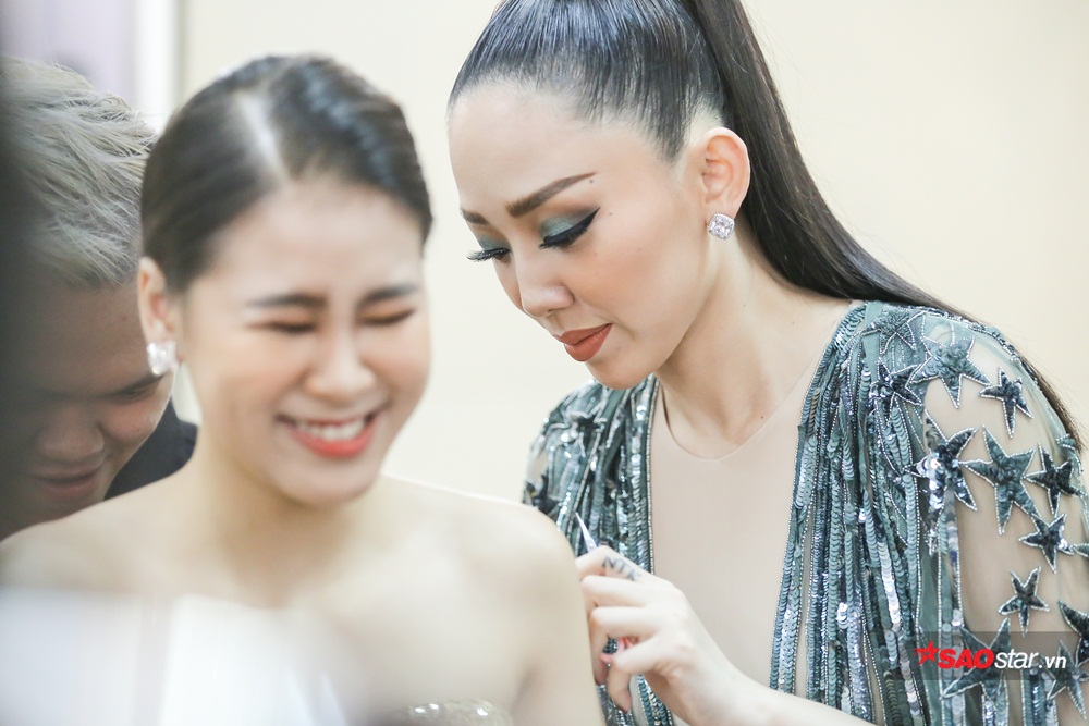 Thu Minh cùng đàn em Tóc Tiên thân thiết bên trong hậu trường.