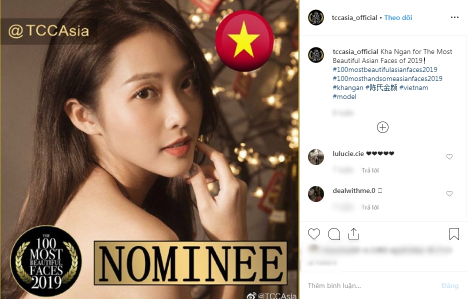 TCC Asia là ấn phẩm thuộc khu vực châu Á của TC Candler - một ấn phẩm phê bình nghệ thuật, âm nhạc, điện ảnh,… uy tín. Kết quả bình chọn top 100 gương mặt đẹp nhất châu Á được tổng hợp ý kiến của độc giả từ các trang mạng xã hội phổ biến như Instagram, Facebook, Weibo,… Với vẻ ngoài xinh đẹp, sắc sảo từng đường nét, việc Khả Ngân nhận được sự yêu thích của đông đảo khán giả châu Á có lẽ cũng là điều dễ hiểu!