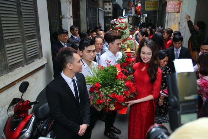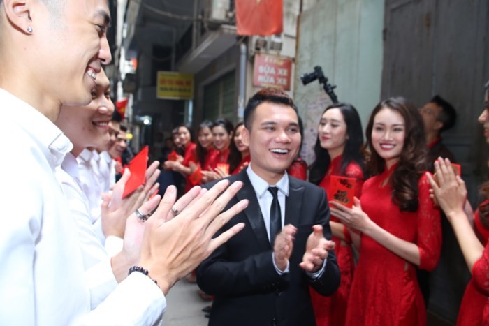 Đặc biệt, dàn bê tráp toàn những tên tuổi nổi tiếng của nhà trai như Quốc Thiên, Yanbi, Vương Anh Tú, Hà Anh,… nhận được không ít sự quan tâm và chú ý từ người xung quanh lẫn cộng đồng mạng.