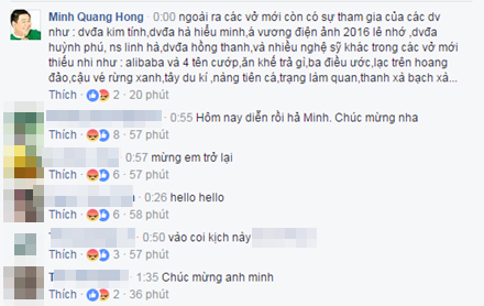 Bên cạnh đó, Minh Béo không quên kêu gọi các em nhỏ tới xem loạt kịch thiếu nhi được anh ta dàn dựng.