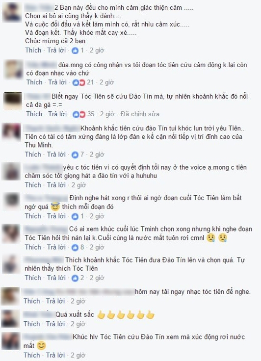 Nhiều khán giả ủng hộ và yêu thích hành động cứu Đào Tín của HLV Tóc Tiên.