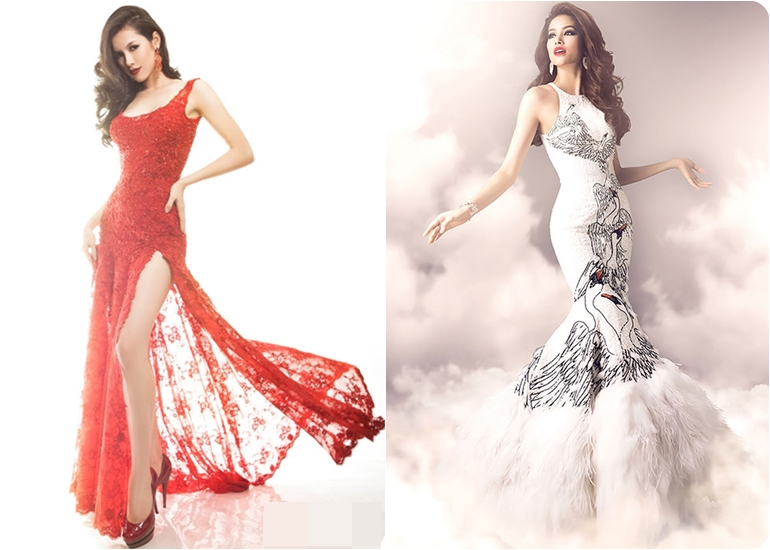 Hoàng My và Phạm Hương từng khiến khán giả quốc tế xiêu lòng khi mang đến đấu trường quốc tế Miss Universe những bộ trang phục dạ hội tuyệt đẹp.