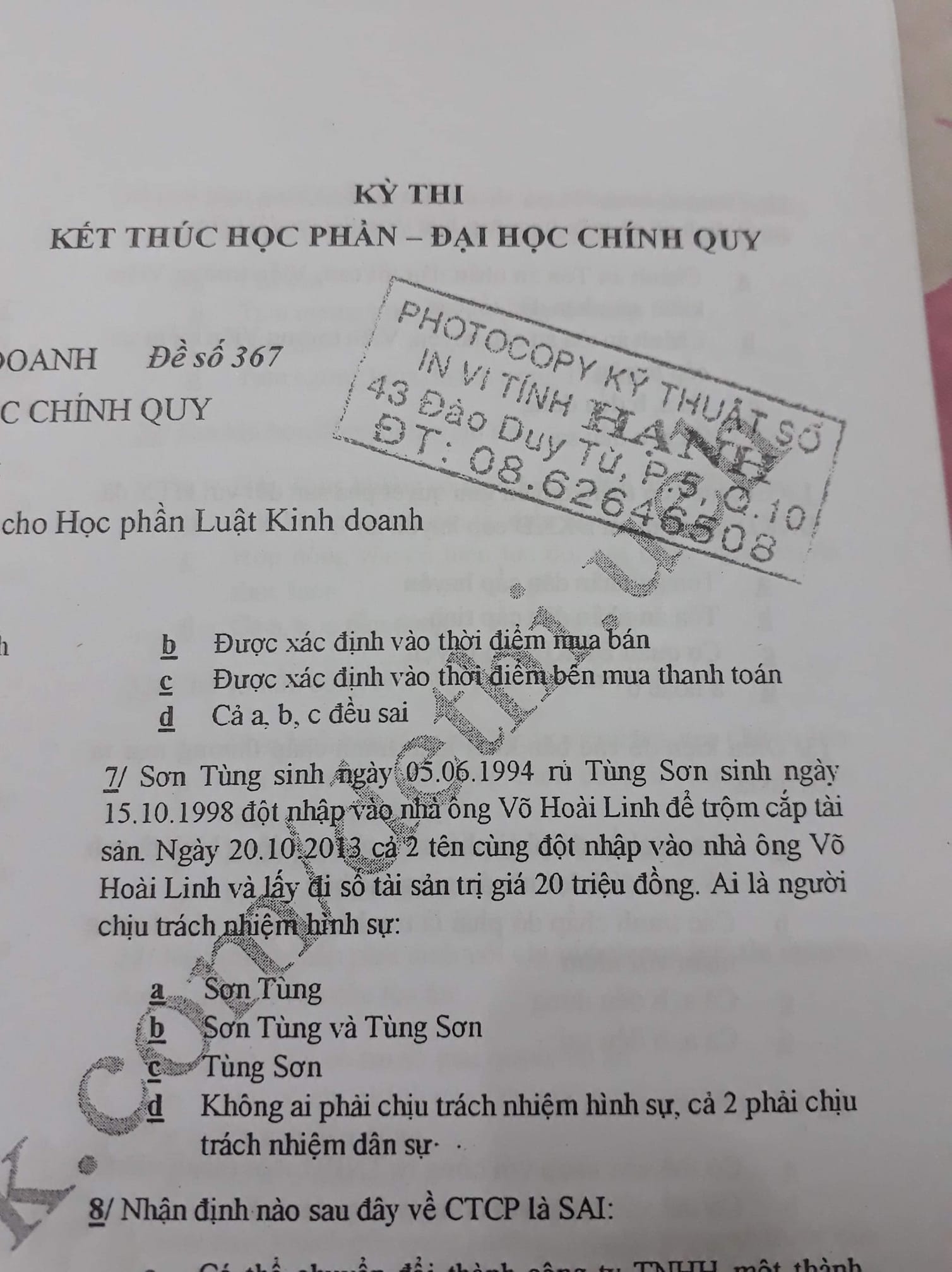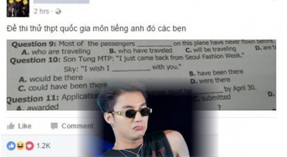 Rất nhiều đề thi lấy tên Sơn Tùng M-TP làm ví dụ.