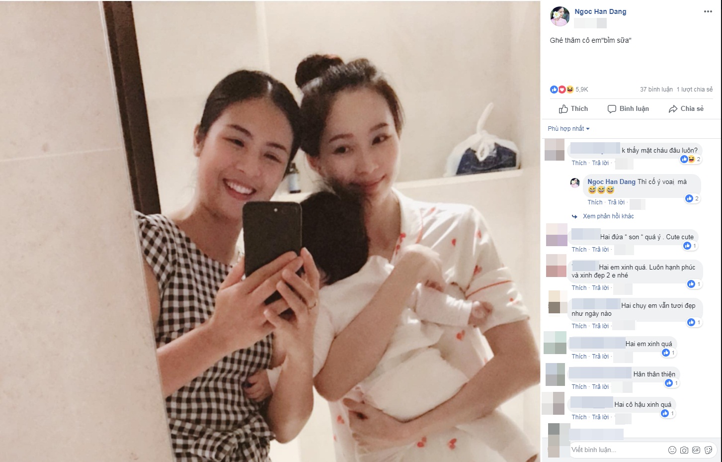Ngọc Hân chia sẻ hình ảnh cùng dòng trạng thái: “Ghé thăm cô em bỉm sữa“.