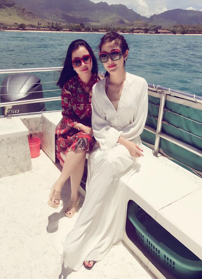 Huyền My và mẹ trong chuyến công tác ở Hawaii, Mỹ.