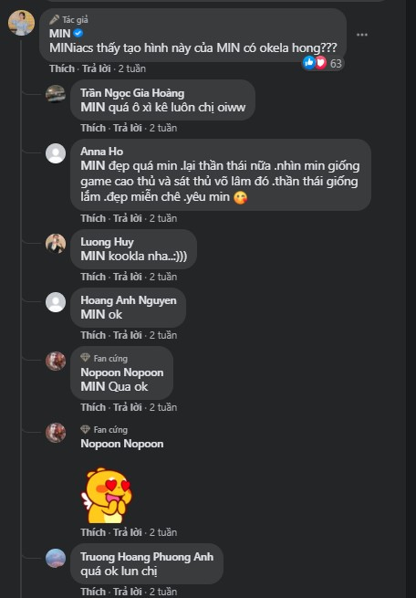 Một fan cứng của Min cho biết: “Nhìn hay ho phết, chắc phải đi tải game về chơi thử!”. Tương tự, một fan khác cũng nhận xét: “Game này chơi cuốn lắm nha mọi người ơi! Tính năng hay ho, nhiều skill nữa, mình tải về vì có Min ai ngờ chơi một lúc ghiền luôn”.