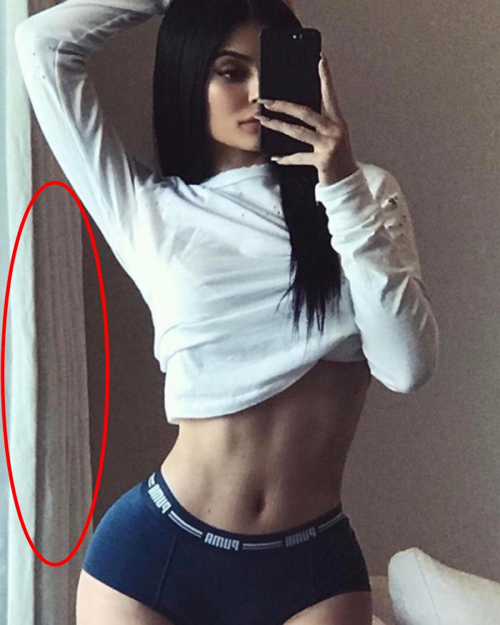 Cây cột phía sau Kylie Jenner mang hình dáng có vẻ hơi trừu tượng quá mức để “hỗ trợ” cho vòng eo của người đẹp được hoàn hảo hết mức có thể.