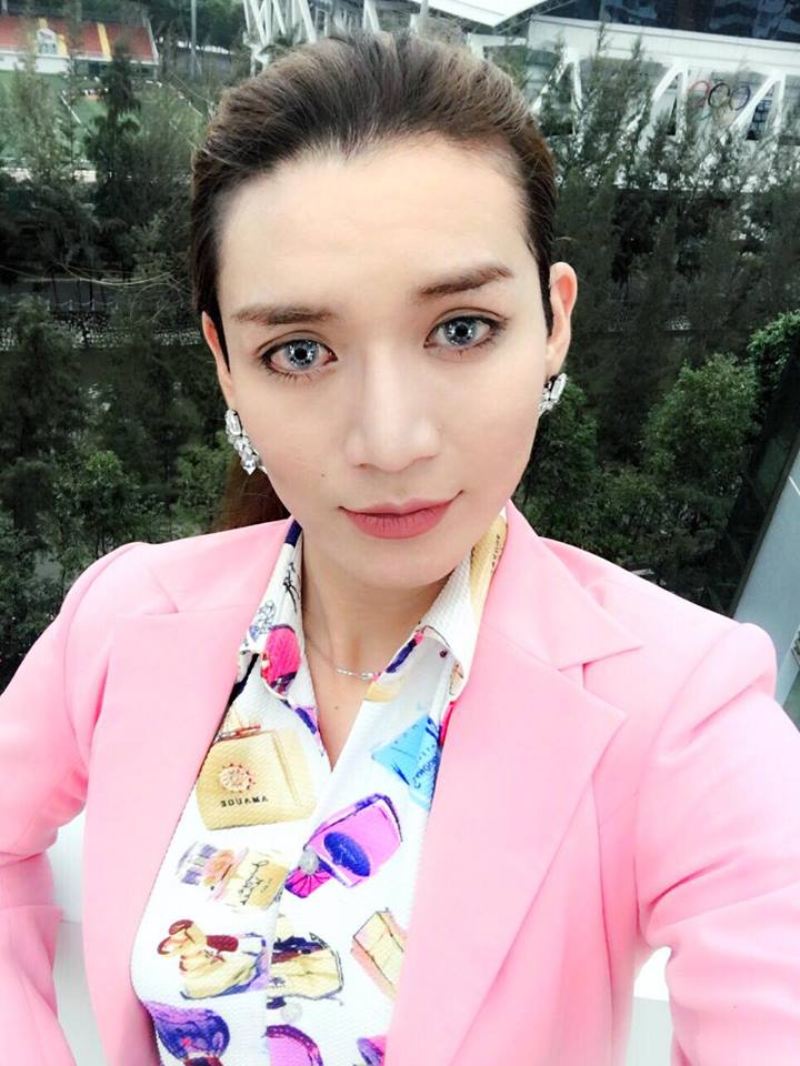 Không khó để bắt gặp hình ảnh nam MC với gương mặt được trang điểm kỹ lưỡng và đôi môi đỏ.