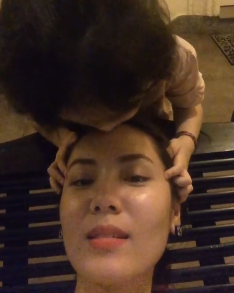 Thi thoảng còn tập làm đẹp giống bác Phương Linh.