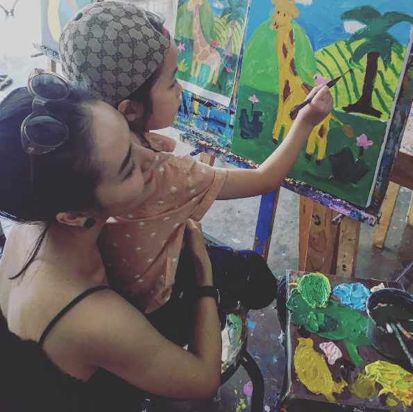 Phương Linh dạy cháu trai học vẽ.