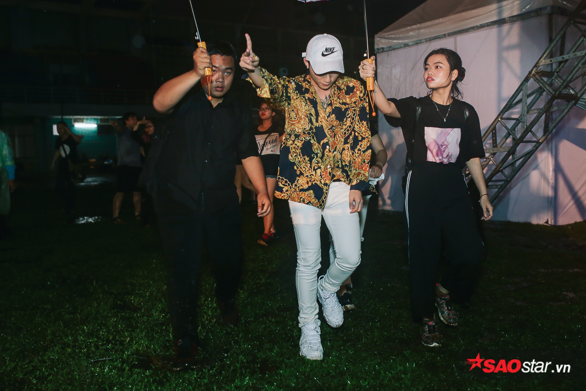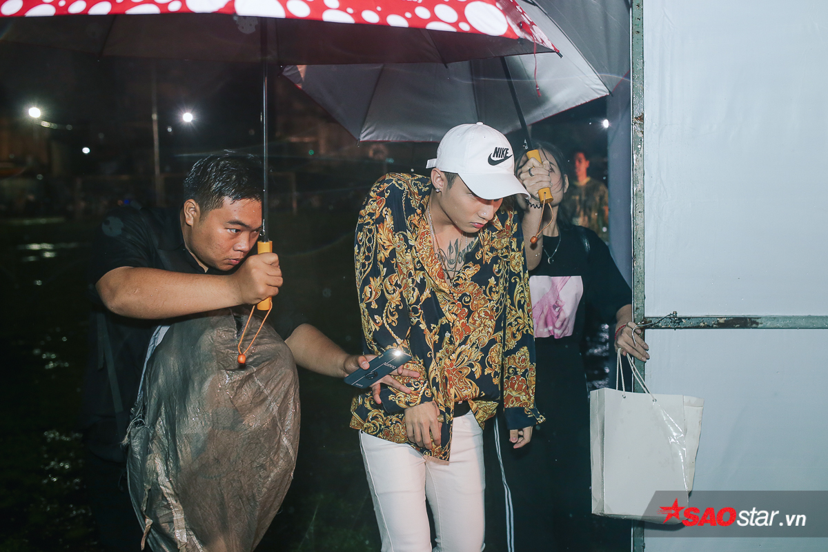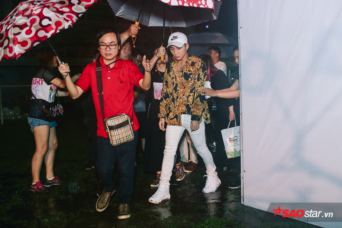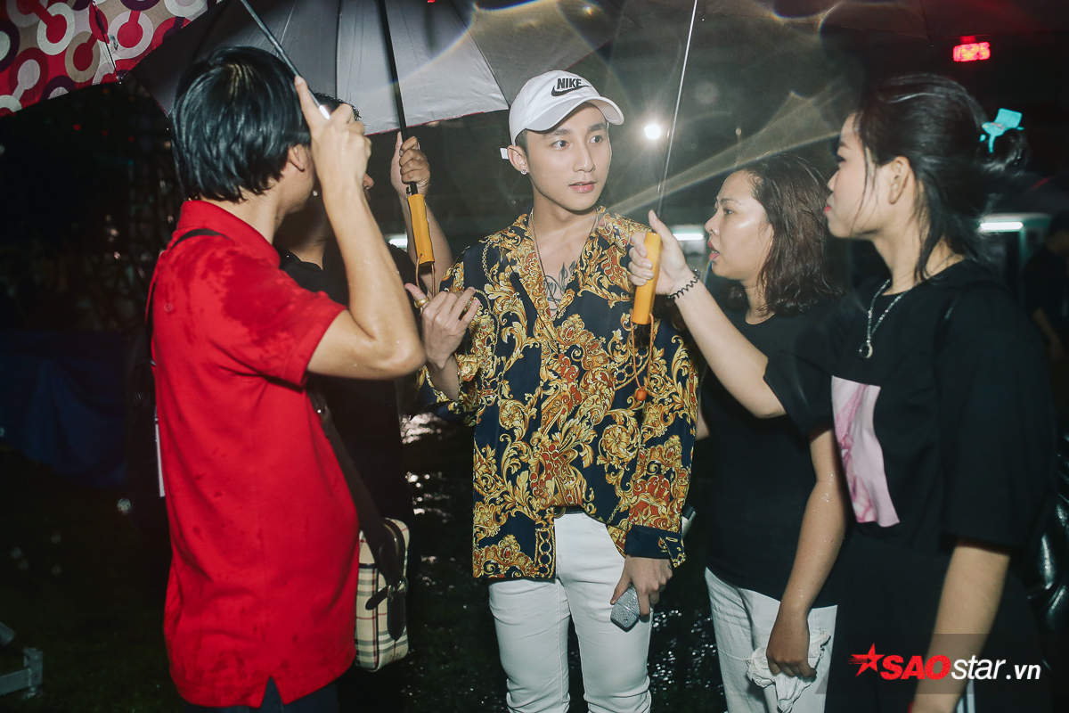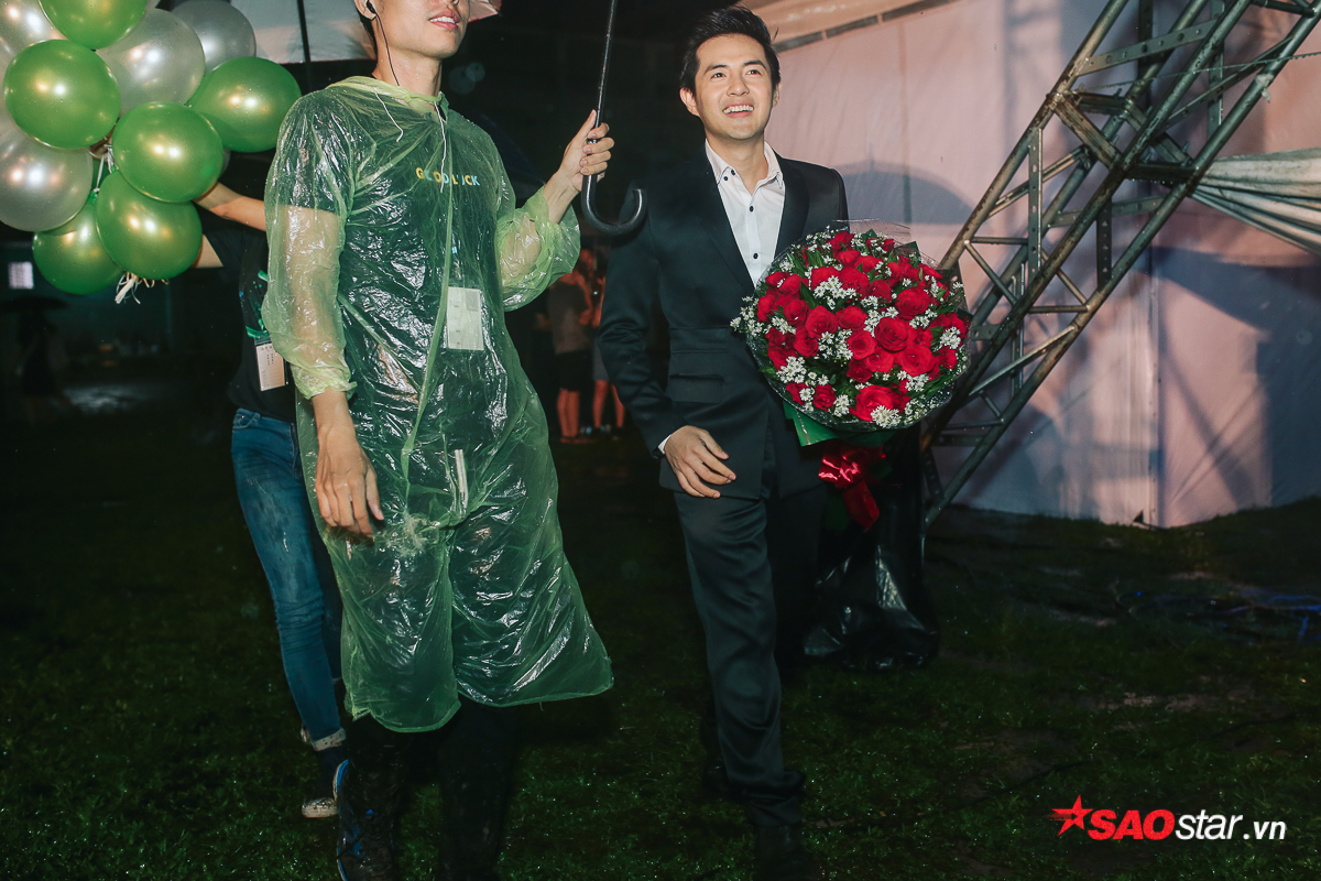 Gần đến giờ lên diễn, nam ca sĩ đội mưa đi ra…