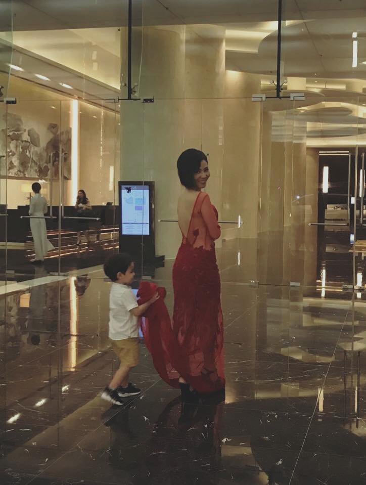 Mới đây, hình ảnh hiếm hoi lộ rõ nửa mặt bé Gấu bất ngờ được Thu Minh chia sẻ trên fanpage chính thức. Theo đó, quý tử đầu lòng của HLV Giọng hát Việt trông khá bảnh bao và rất “ra dáng” người lớn. Khoảnh khắc bé Gấu tự giác cầm đuôi váy, “hộ tống” mẹ đi diễn khiến người hâm mộ không khỏi thích thú và hết lời khen ngợi.