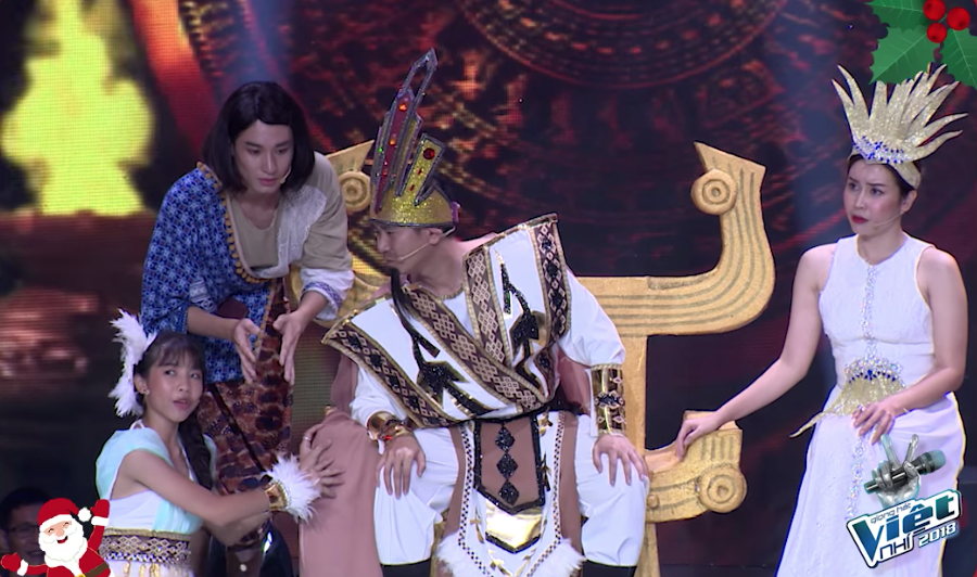 Tiết mục biểu diễn còn được team Giang - Hồ còn rất sáng tạo và cập nhật. Thậm chí khiến Bảo Anh phải bất ngờ vì trong vở kịch có sự xuất hiện của một đoạn tiết tấu thuộc bài hit “Như Lời Đồn”. Nữ HLV có vẽ khá thích thú và không thể nhịn được cười, đồng thời tỏ rõ sự thán phục cho phần đầu tư của team Giang - Hồ.