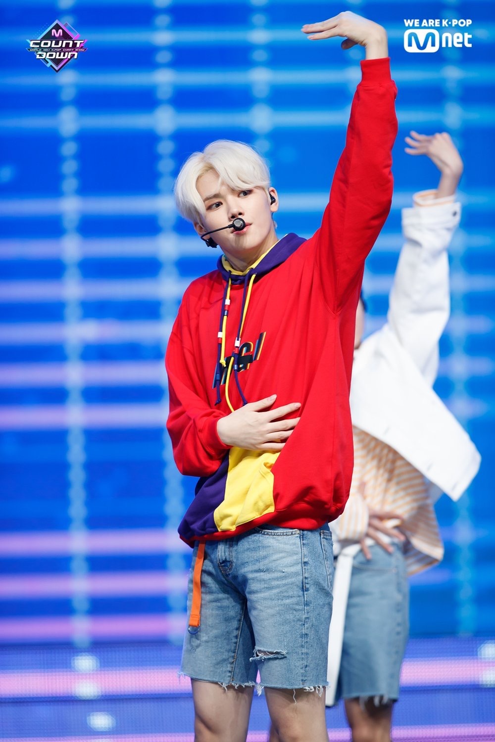 Khoảnh khắc Woo Seok bị tuột áo do vũ đạo mạnh mẽ làm nên lịch sử. Trông ngầu, “mát mẻ” khoe da thịt và nổi bật hơn rất nhiều so với các thành viên khác.