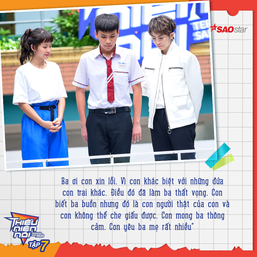 Không chỉ “gây bão” với người xem bởi sự xuất hiện của nhiều nam sinh soái ca tại trường THCS - THPT tư thục Hồng Đức, tập 7 Thiếu niên nói 2020 còn mang đến những câu chuyện thấm đượm tình cảm gia đình. Từ sự hy sinh thầm lặng của bố mẹ, con cái có cái nhìn thấu hiểu và yêu thương. Đặc biệt là màn “come-out” của cậu bé học lớp 11 mong muốn người cha chấp nhận “con người thật” khiến người xem băn khoăn và trăn trở.