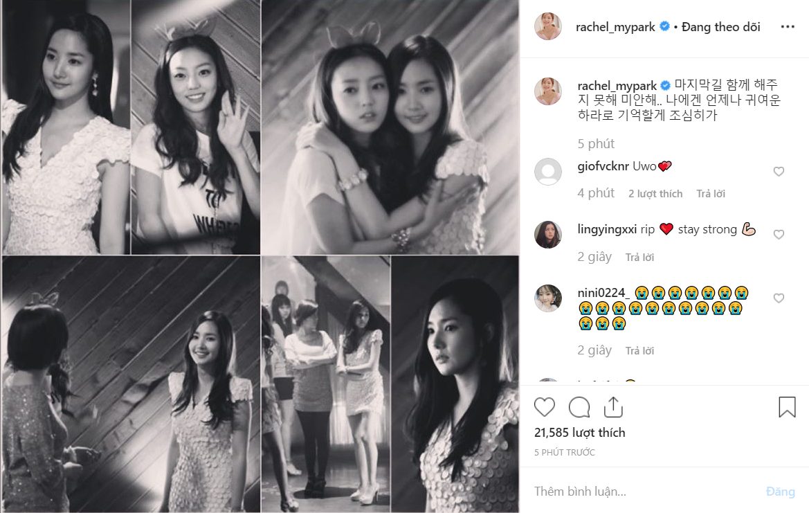 Vào khoảng 2 giờ sáng (KST) ngày 25/11, Park Min Young bất ngờ đăng tải ảnh chụp cùng Goo Hara lên mạng xã hội Instagram kèm theo chú thích: “Chị xin lỗi vì không thể ở bên em trong chặng đường cuối cùng…Chị sẽ luôn luôn nhớ đến Hara dễ thương, bảo trọng nhé”. Được biết, cả hai trở nên thân thiết, luôn giúp đỡ hỗ trợ lẫn sau kể từ khi tham gia bộ phim truyền hình Thợ săn thành phố vào năm 2011.